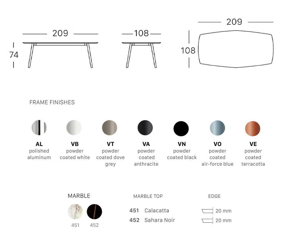 Дизайн: RadiceOrlandini. Идея возникновения коллекцииSquidисходит из необходимости создания универсальныхстолов, адаптируемыхк различным средам и доступныхв различных формах и размерах. Squid M- это стол со столешницей из мрамора, доступный в прямоугольной или шестиугольной версии. Название Squid является данью природе,отсылая к «каракатице», что поясняет необычную форму литых алюминиевых ножек.Это делает ножки такими же легкимипо форме, каки прочнымипо материалу. Небольшое изменение продольной поверхности, которое можно увидеть спереди, имеет две цели: добавить «гребень» к ножке, чтобы сделать ее более прочной и создать интересный контраст света и тени. Прямолинейный, разнообразный и универсальный стол Squid M адаптируется к любым условиям, предлагая бесконечное гостеприимство в доме, в общественныхместах и на различных мероприятиях; он станет украшением любого пространства и обеспечит комфортный прием пищи. Откройте для себя все доступные варианты отделки. Особенности: Конструкциявыполнена из металла, ножки - из литого под давлением алюминия. Доступны отделки: полированный алюминий и порошковое покрытие в различных цветах. Столешница толщиной 20ммиз мраморатолщиной 20мм. Скошенный край. Защитныйлакиз прозрачного глянцевого полиэстера. Подпятники выполнены из полипропилена. Варианты отделки каркаса и столешницы можно выбрать из палитры. Поставляется в разобранном виде. Посмотреть технические характеристики. Цена на сайте указана за модель с ножками из окрашенного в голубой цвет алюминияи столешницей из черного мрамора Сахара Нуар. Для уточнения всех возможных вариантов материала ицвета данного изделия обращайтесь к нашимменеджерам!Характеристики