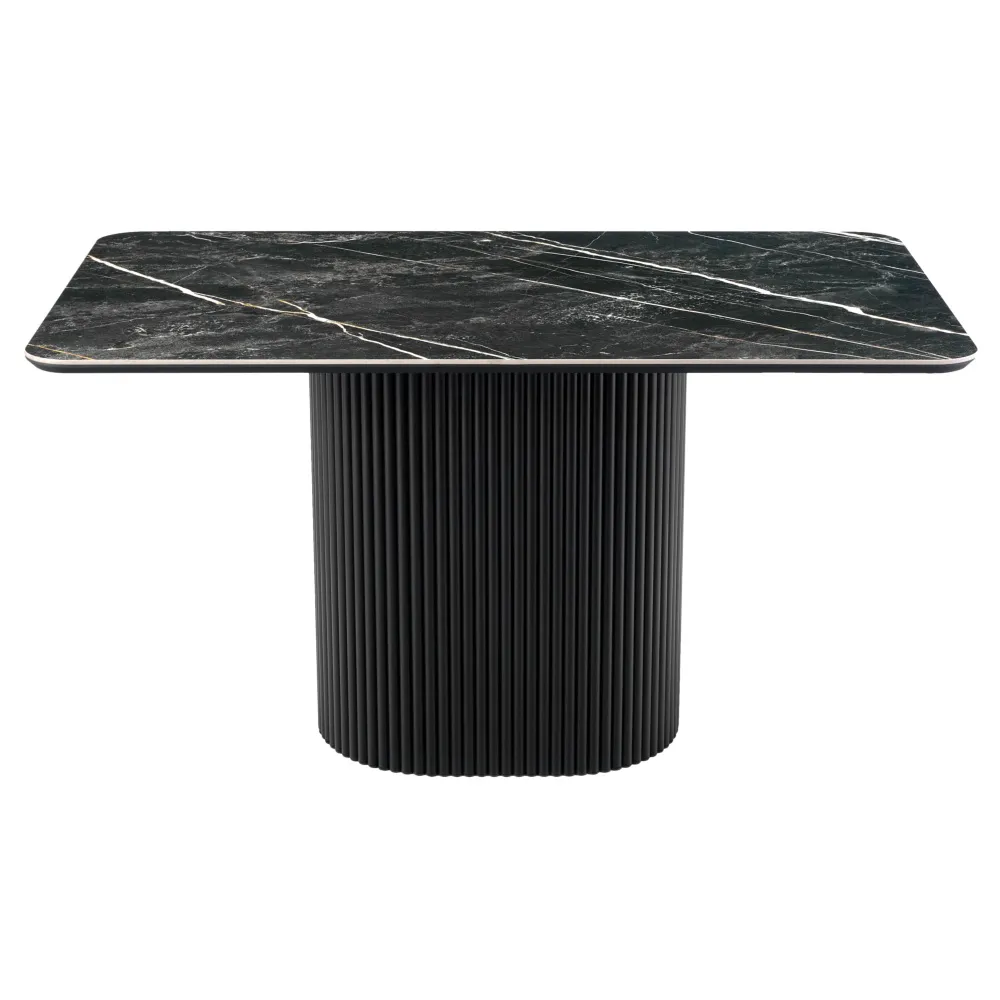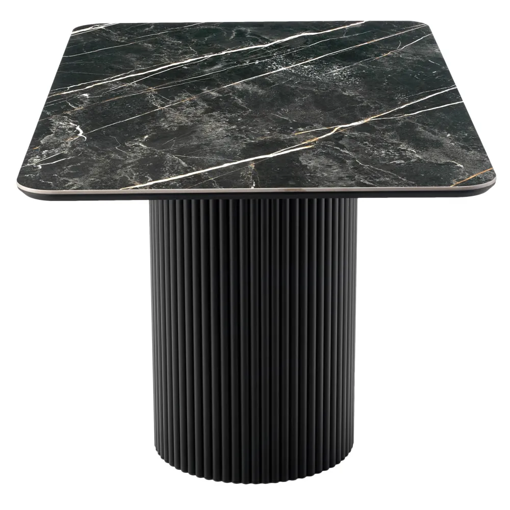 Высококачественная керамическая столешница: стол Festa обладает глянцевой премиальной столешницей из керамогранита Wacom Forest Pulido, имитирующей черный мрамор. Поверхность размером 1400х850 мм со скошенной кромкой не царапается, не впитывает жидкость и легко моется, что обеспечивает долгий срок службы и минимальный уход.
