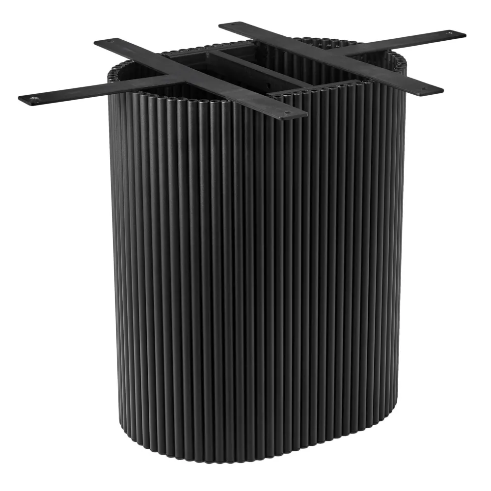 Элегантная овальная опора: металлическая основа черного цвета придает столу стабильность и стильный современный вид, идеально гармонируя с мраморной столешницей.