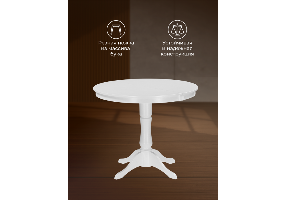 Стол деревянный Woodville Амадей 90(130)x90 белый матовый