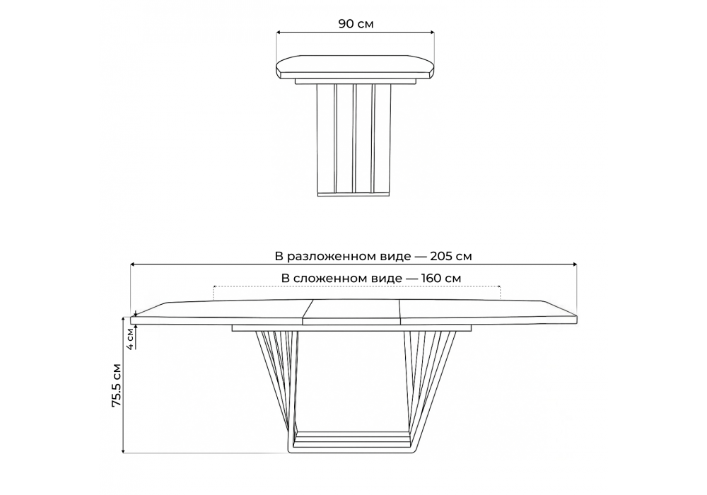 Длина стола в разложенном виде