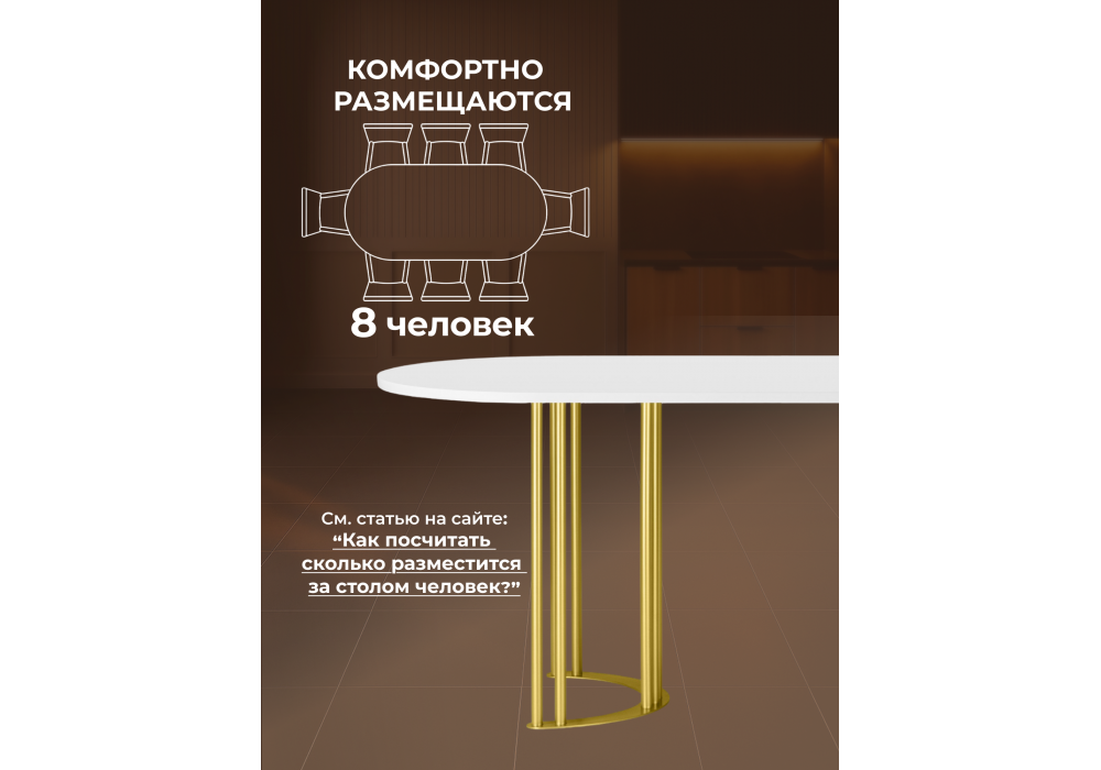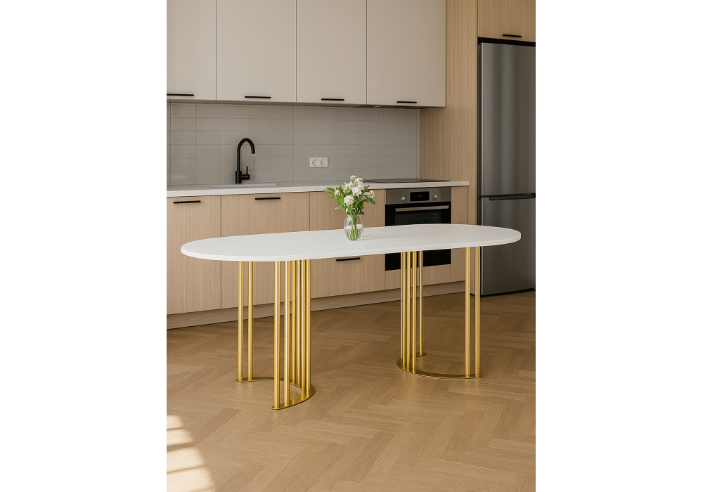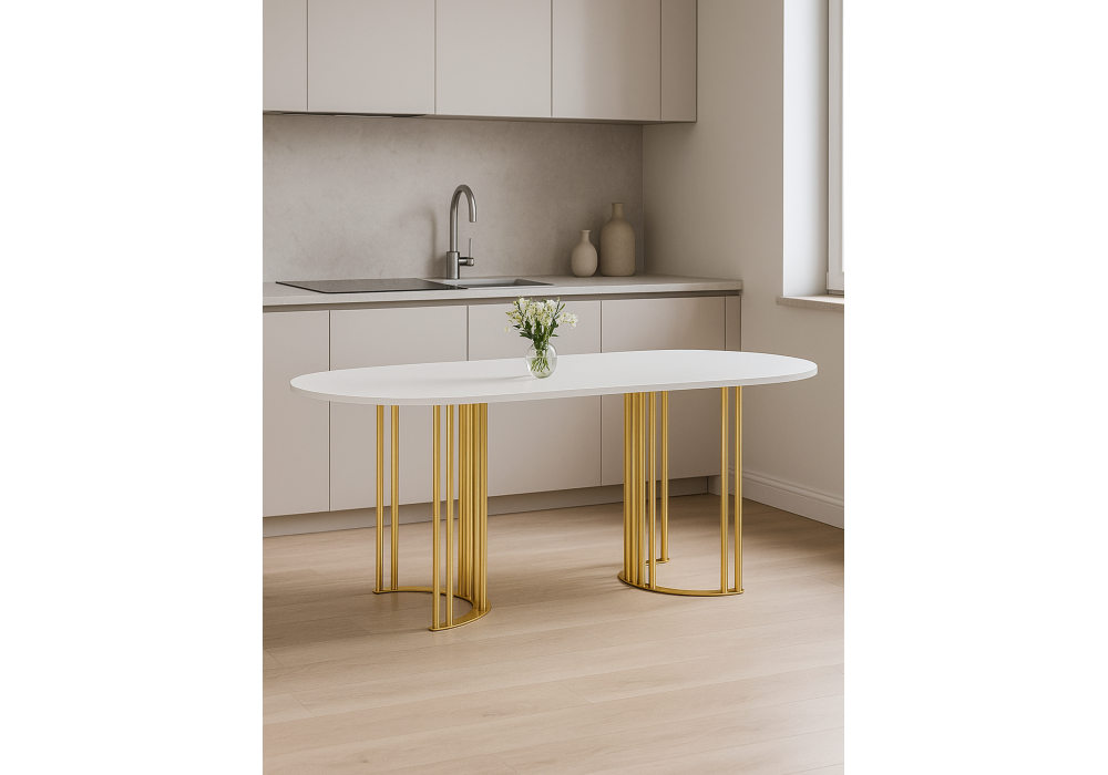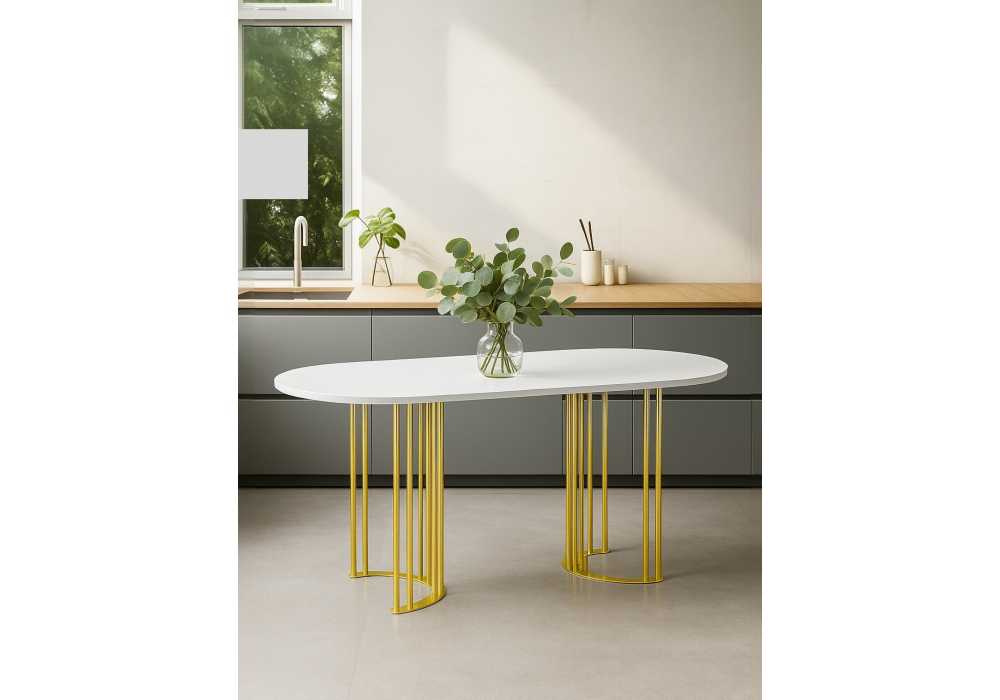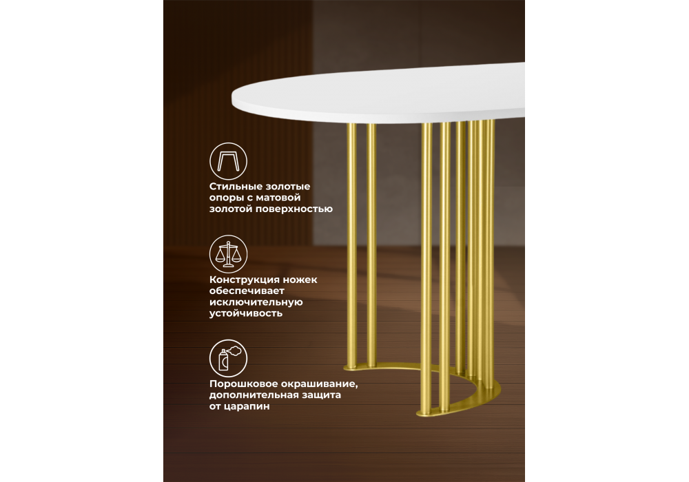 Стол деревянный Woodville Хьюго О 160 х 90 белая шагрень пленка, золотые ноги