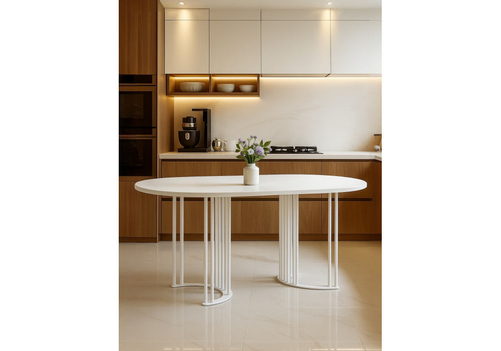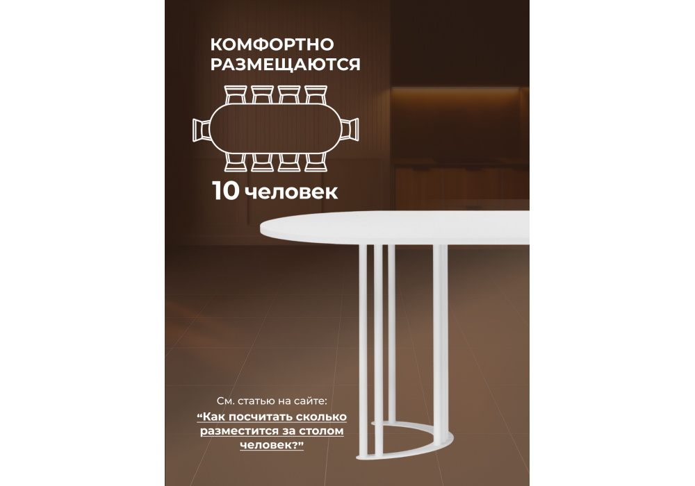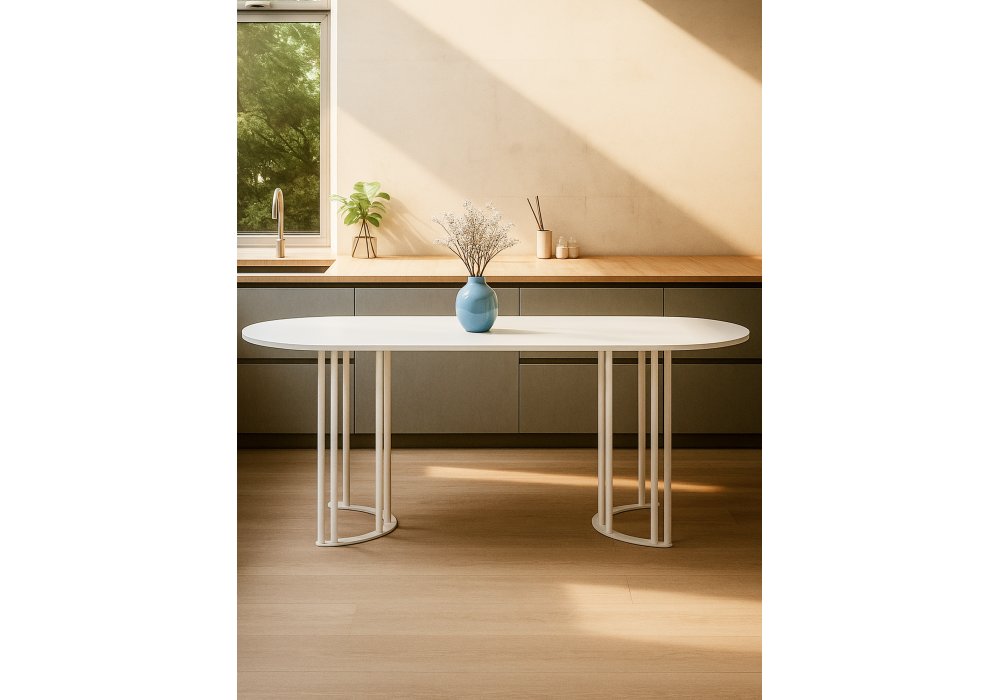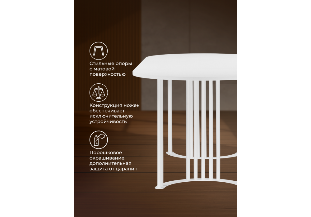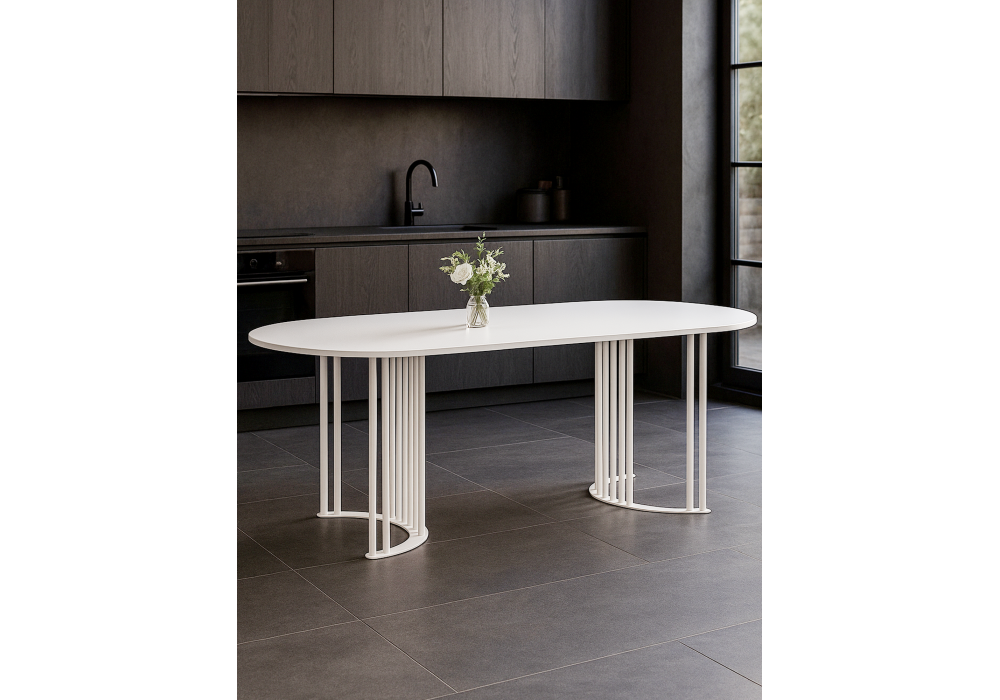 Стол деревянный Woodville Хьюго О 200 х 90 белая шагрень пленка, белые ноги