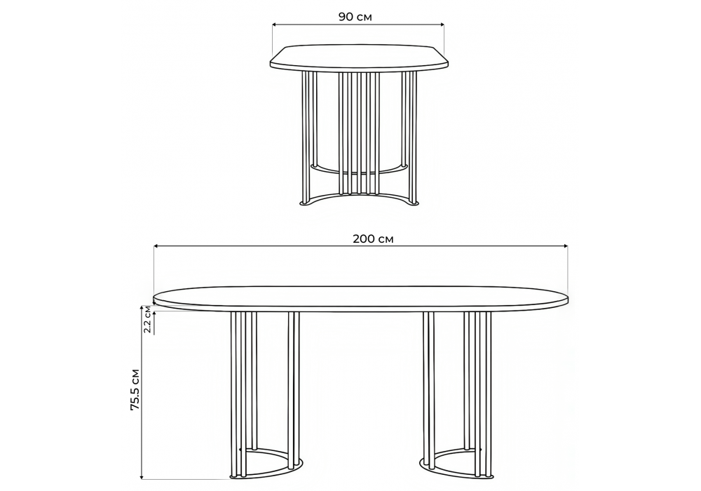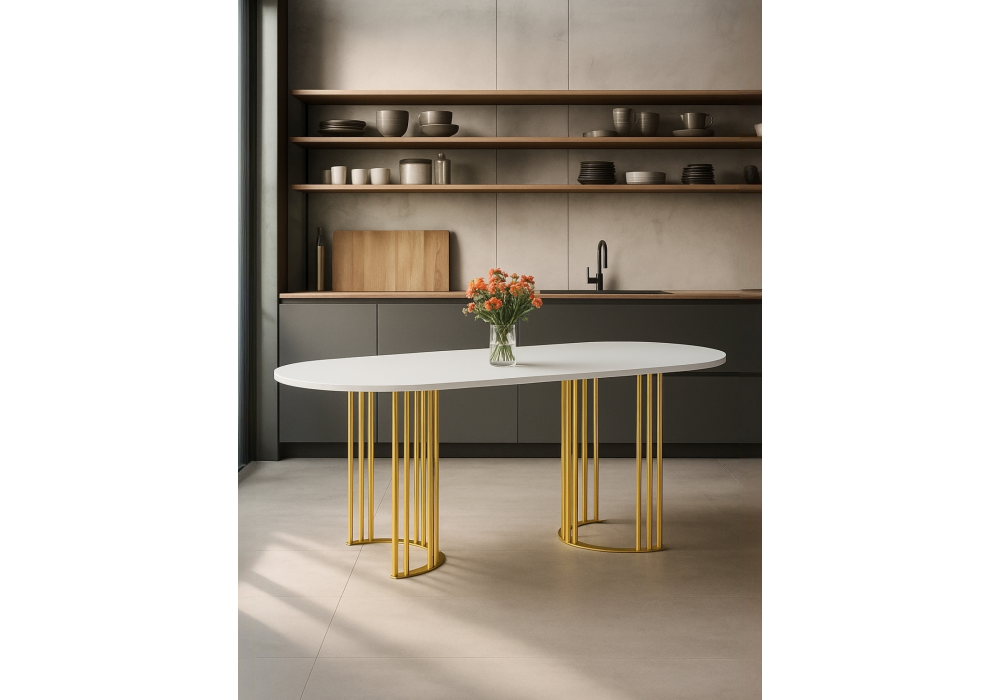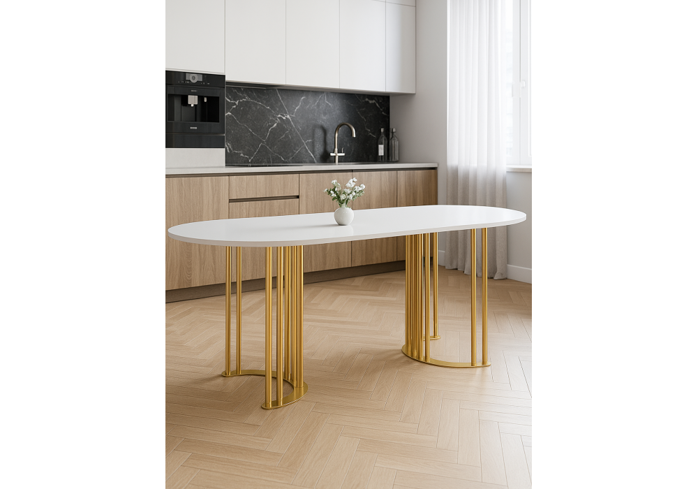 Стол деревянный Woodville Хьюго О 200 х 90 белая шагрень пленка, золотые ноги