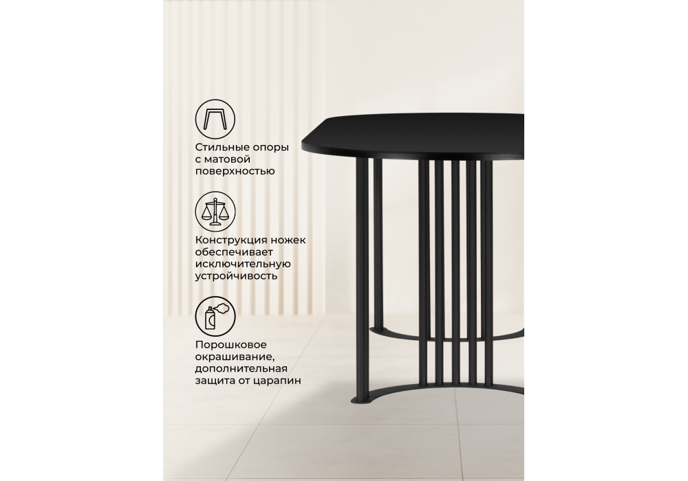 Стол деревянный Woodville Хьюго О 200 х 90 черная шагрень пленка, черные ноги, ножки черные