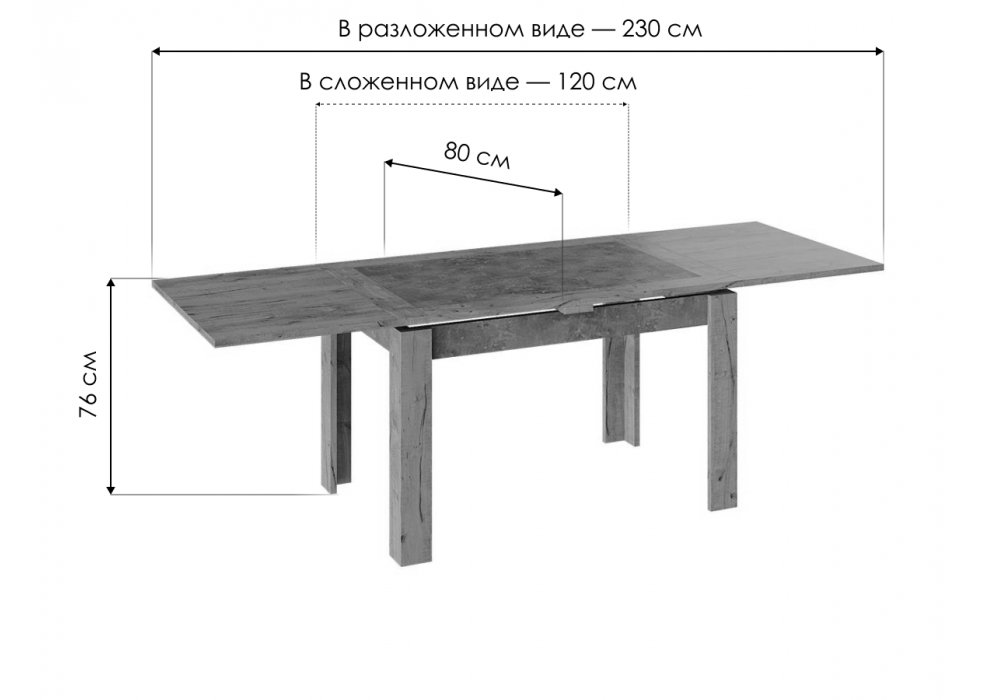 Длина стола в разложенном виде