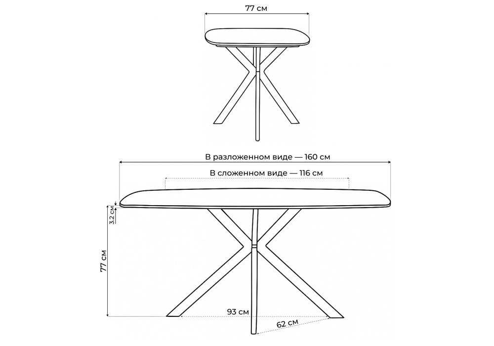 Длина стола в разложенном виде