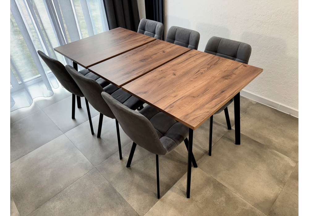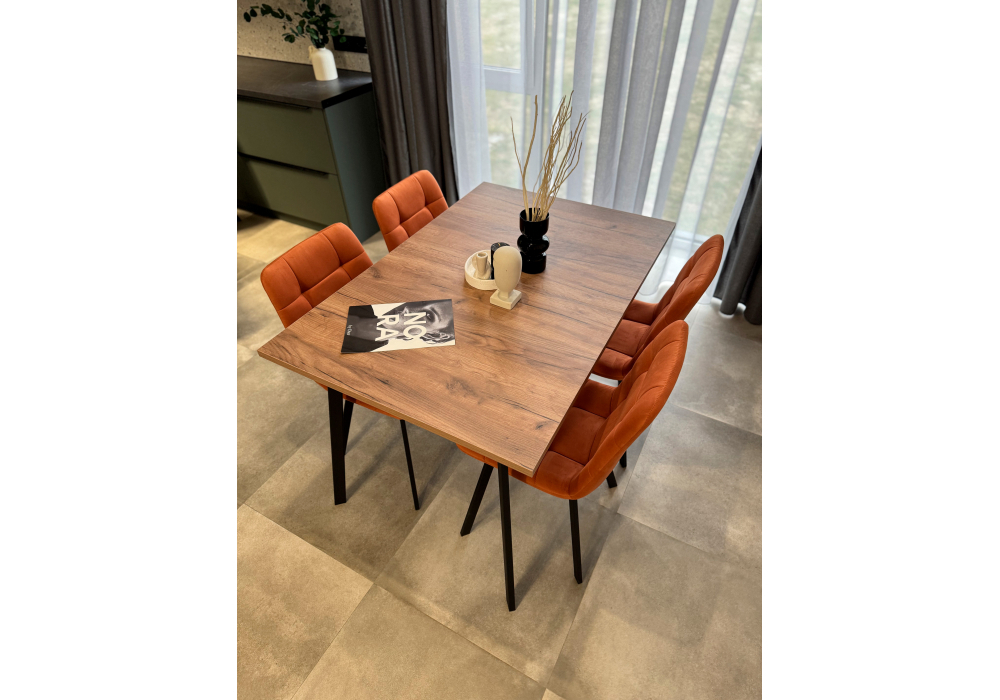 Стол деревянный Woodville Кортни 117 (157) x 77 дуб крафт табачный, черный матовый, ножки черные