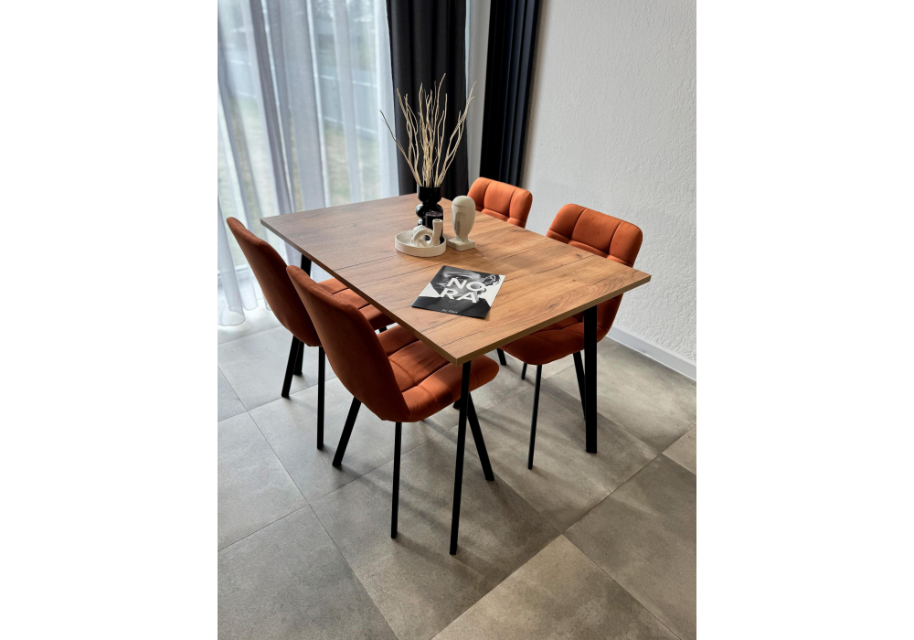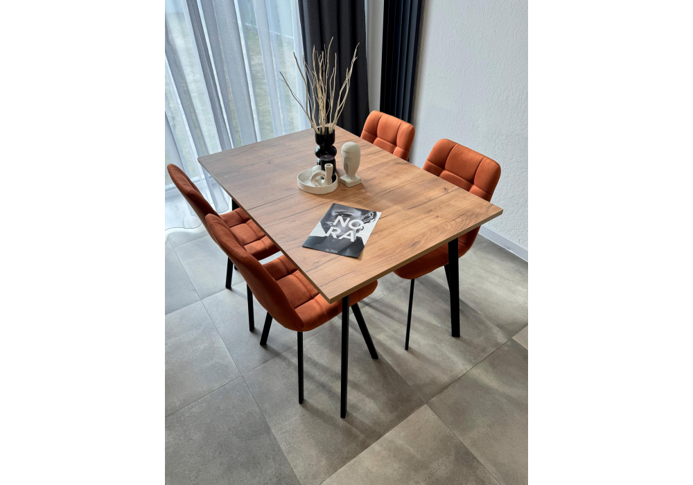 Вы можете купить Стол деревянный Woodville Кортни 117 (157) x 77 дуб крафт золотой, черный матовый, ножки черные оптом в нашем магазине, предложим цену с оптовой скидкой.
