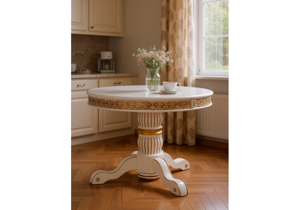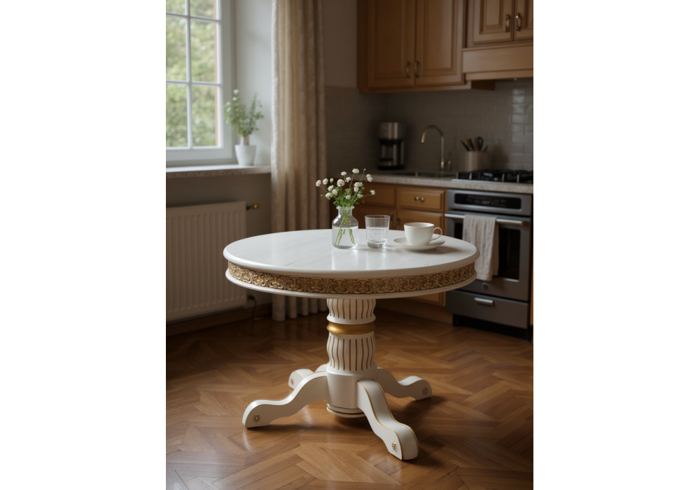 Вы можете купить Стол деревянный Woodville Лорд молочный, золотая патина оптом в нашем магазине, предложим цену с оптовой скидкой.