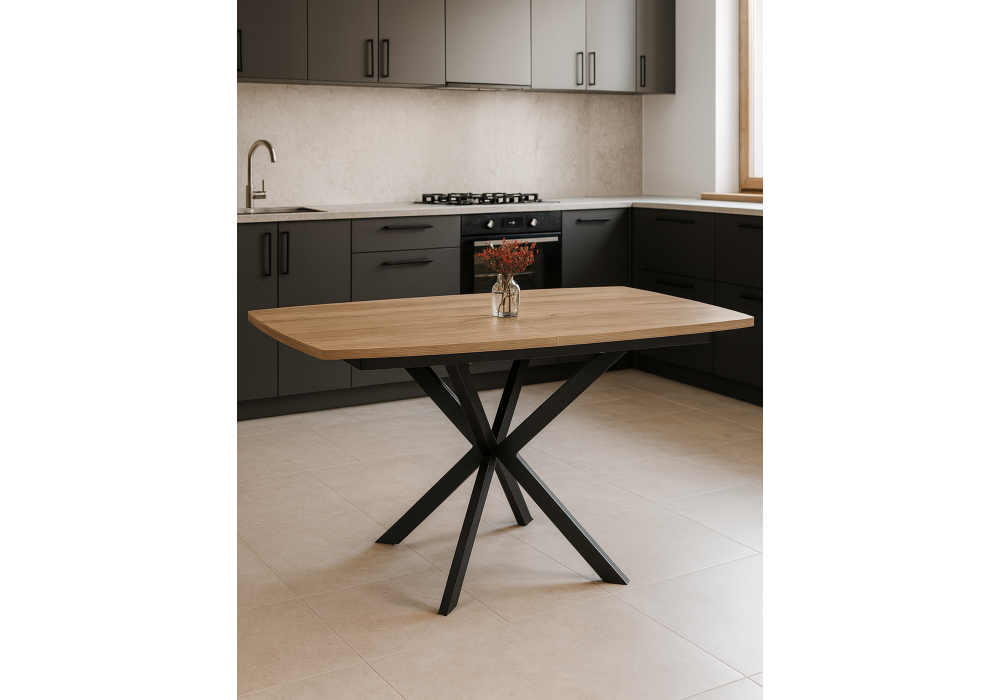 Стол деревянный Woodville Палу 130(170)х80 дуб веллингтон, черный