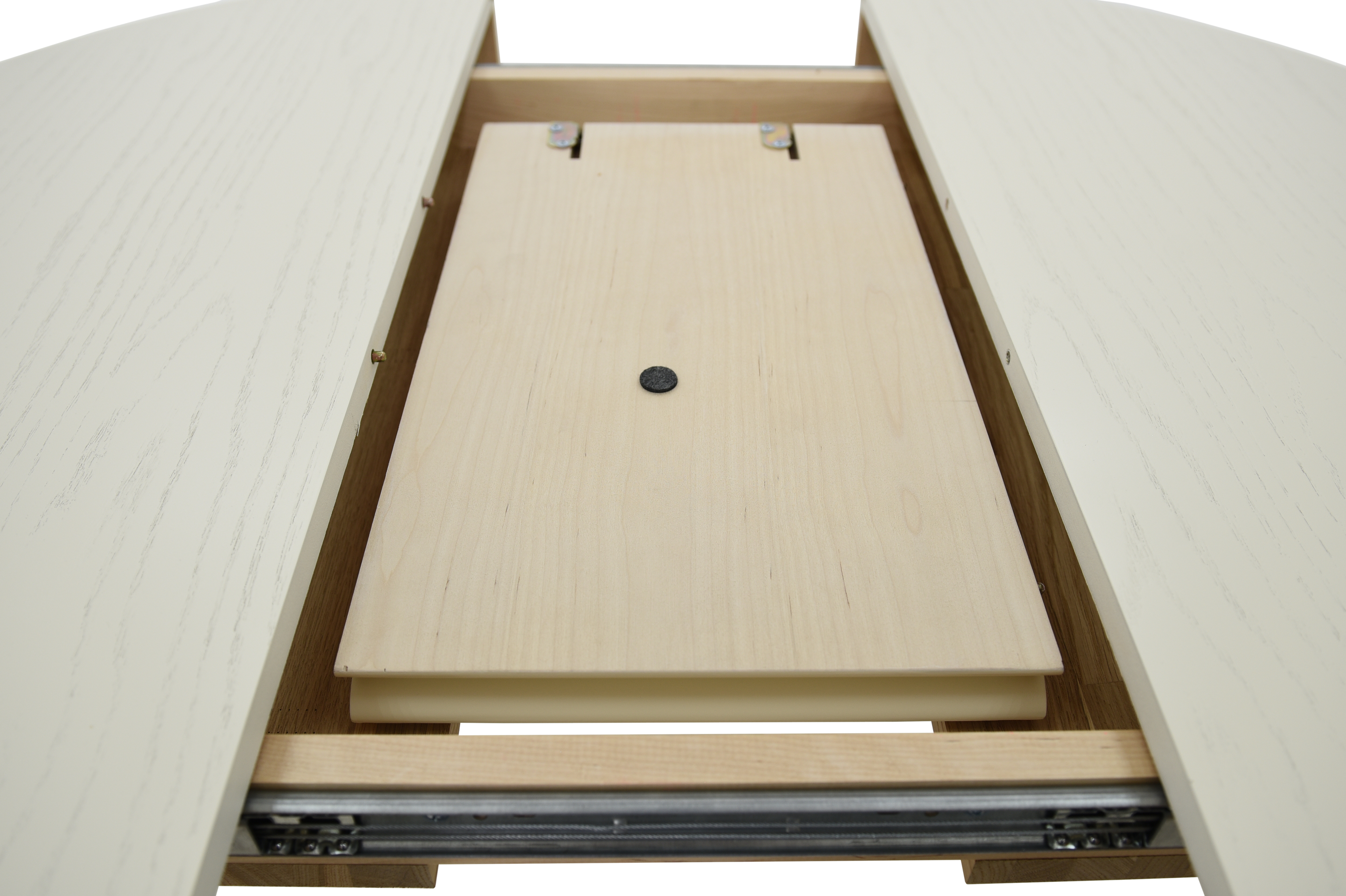 Стол обеденный раздвижной из массива березы с одной резной колонной. Сегментированное склеивание колонны защищает ее от расклеивания. Круглая столешница со шпоновым покрытием. Измененное крепление вставки, поверхности стола, формы опоры и лапок. Механизм трансформации столешницы: вставка «бабочка» с синхронным раздвижением.Характеристики