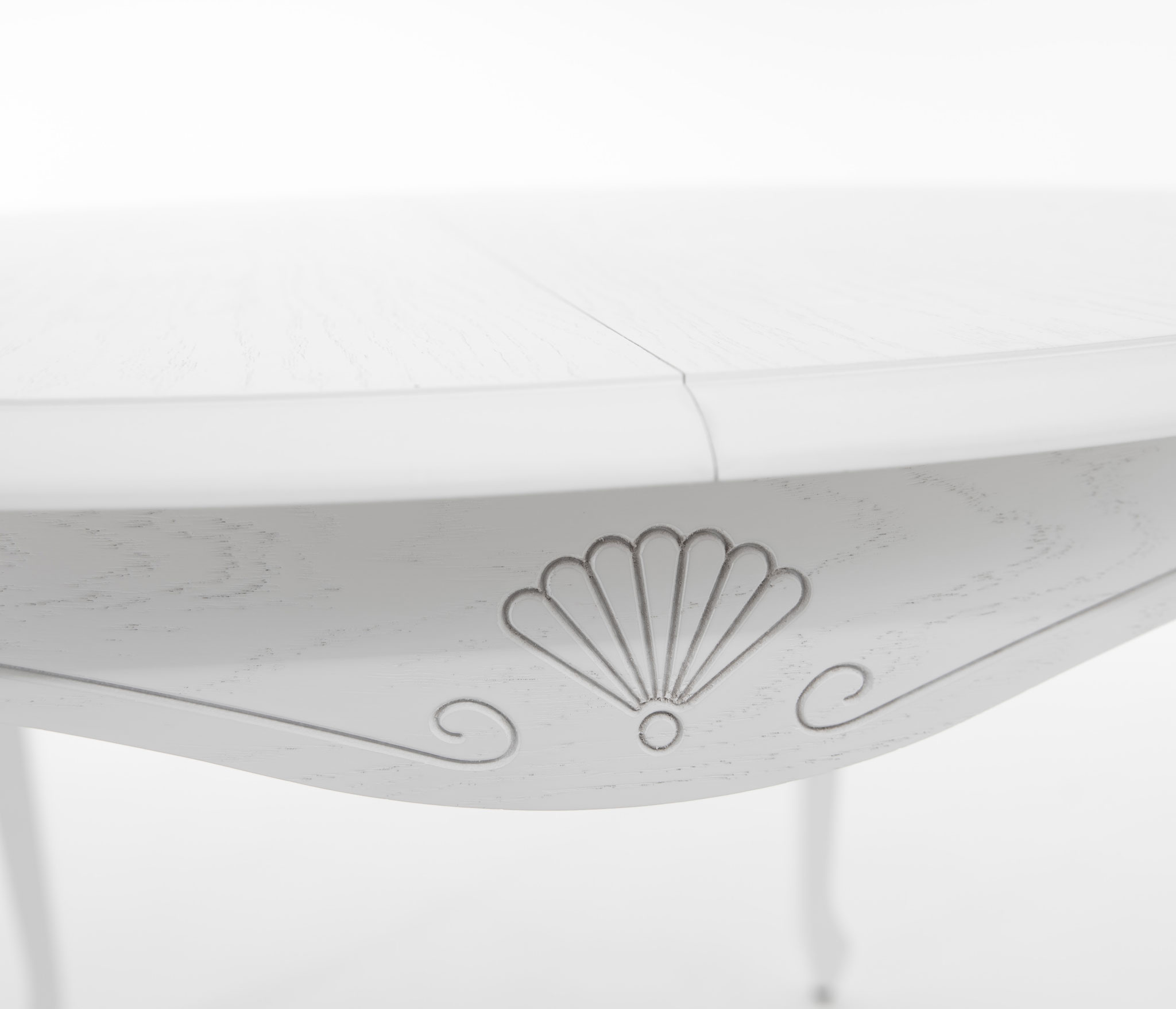 Обеденный раздвижной стол из массива березы со шпонированной поверхность столешницы. Синхронный механизм трансформации. Изящная форма ножек и фигурный царговый пояс. Патина подчеркивает изящность ног и оригинальный торец столешницы.Характеристики
