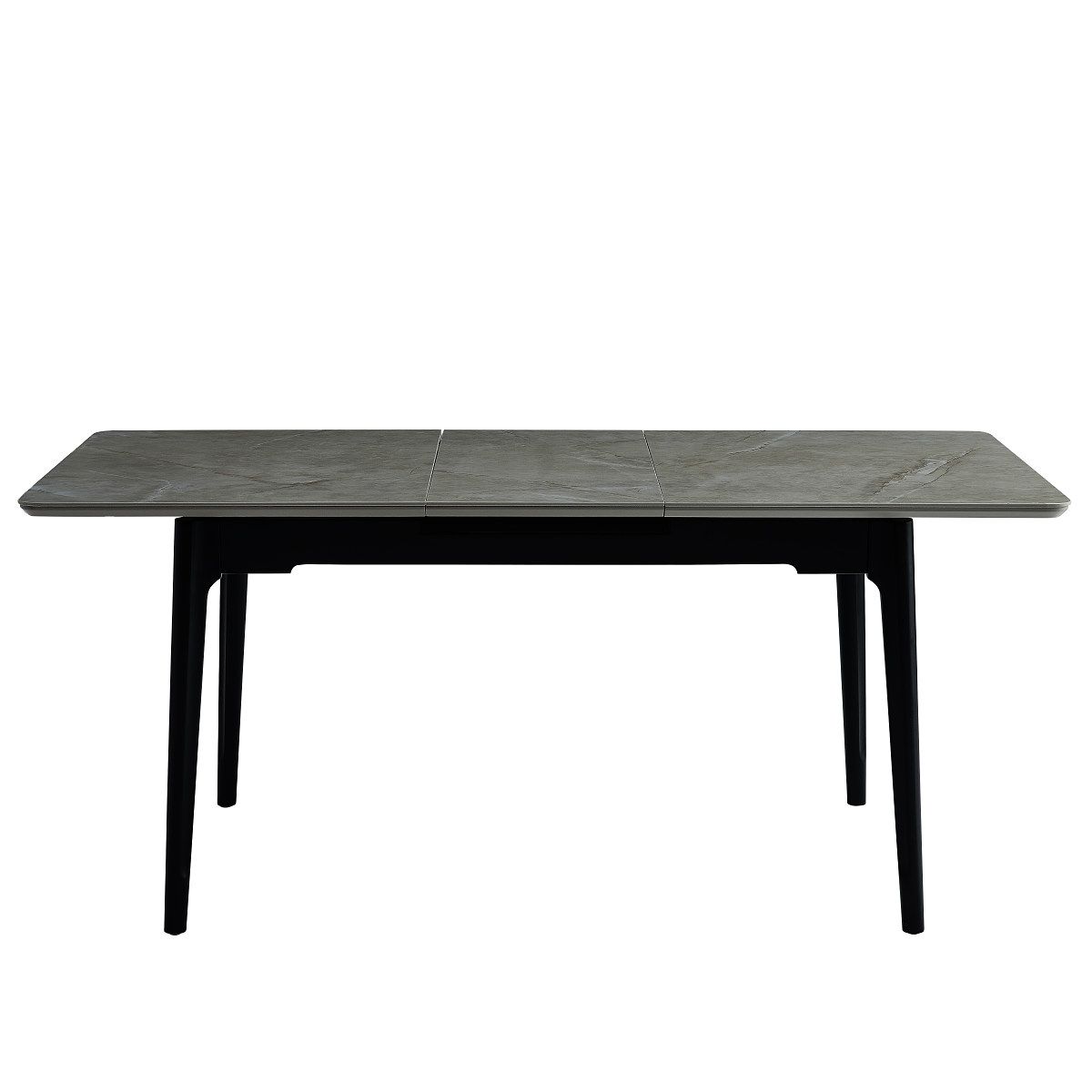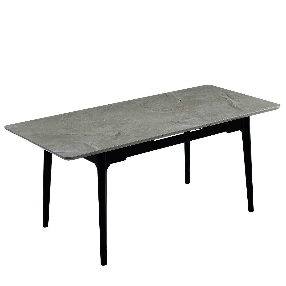 Стильный обеденный раскладной стол. МОНОЛИТНАЯ КЕРАМИКА 6мм на МДФ Cardo grey. Центральная вставка 400мм 6мм керамика. Ножки массив дерева, крашеные в черный матовый цвет.Характеристики