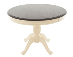 Деревянный обеденный стол с круглой раскладной столешницей. Особенностями дизайна стола является резная опора, на которой располагается столешница, а также оригинальный комбинированный цвет. Столешница выполнена в цвете орех темный, подстолье и нога - слоновая кость. В разложенном виде длина столешницы увеличивается на 30 см. Идеальным дополнением к столу Леонардо являются стулья и банкетка Кристиан, выполненные в аналогичной цветовой гамме.Характеристики