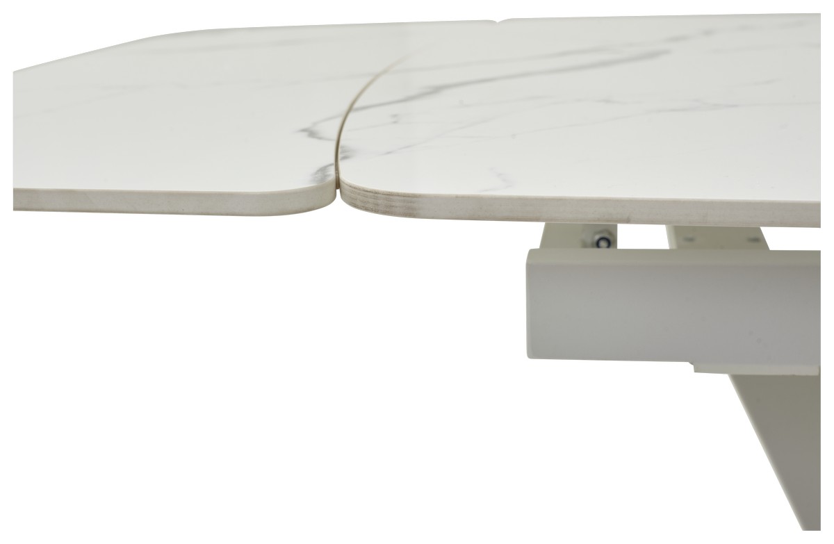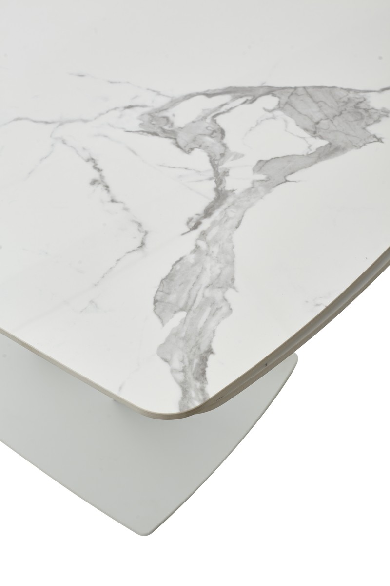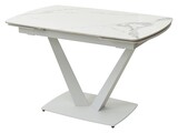 Стол АЛАТРИ (ALATRI) 120 с глянцевой керамической столешницей белый мрамор на белом каркасе