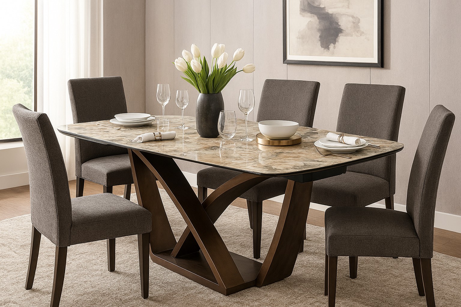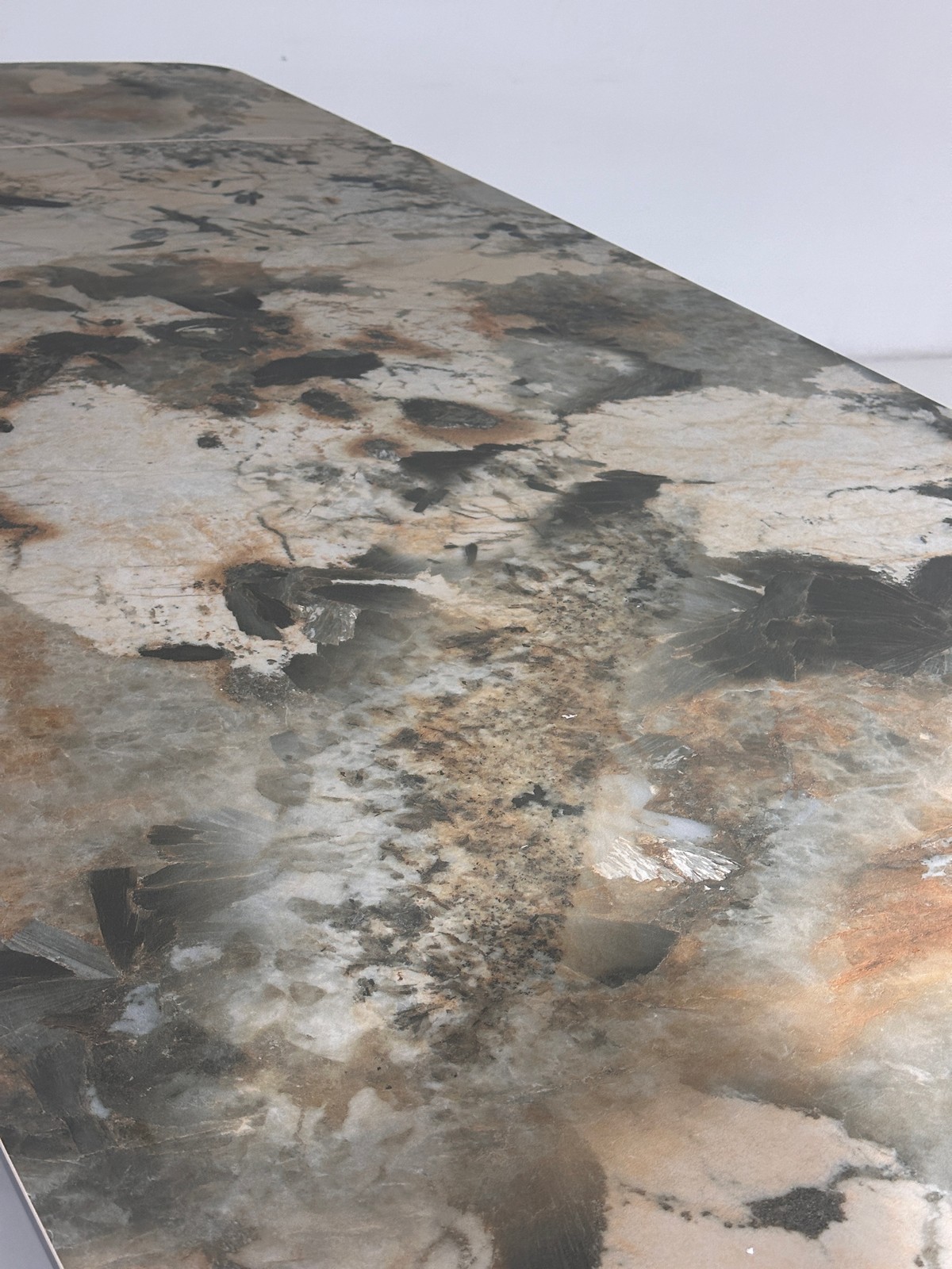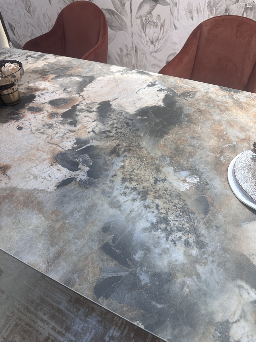 - испанская матовая керамика в цвете серо-коричневый мрамор, толщина столешницы 13 мм (3 мм керамика + 10 мм стекло), не царапается, не впитывает загрязнения, термостойкая;