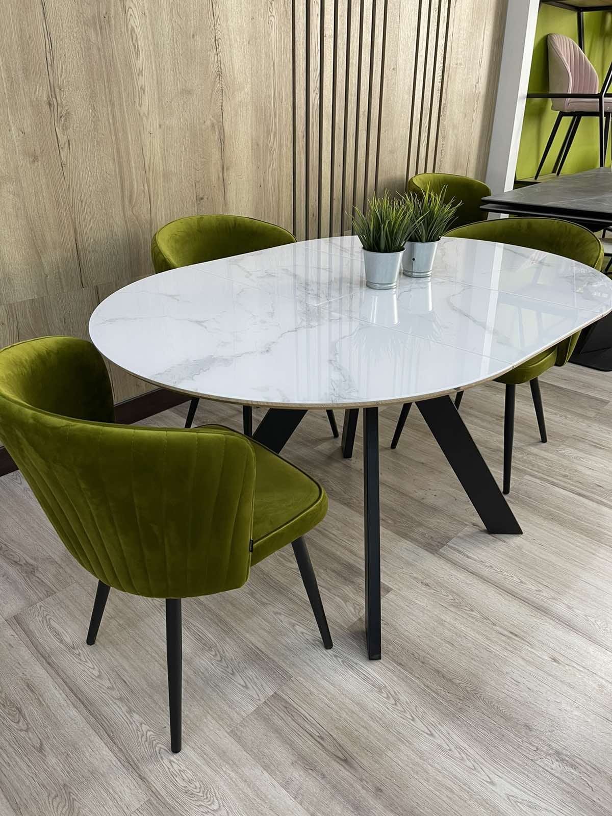 Стол БОНЖУР Белый мрамор со стеклянной столешницей