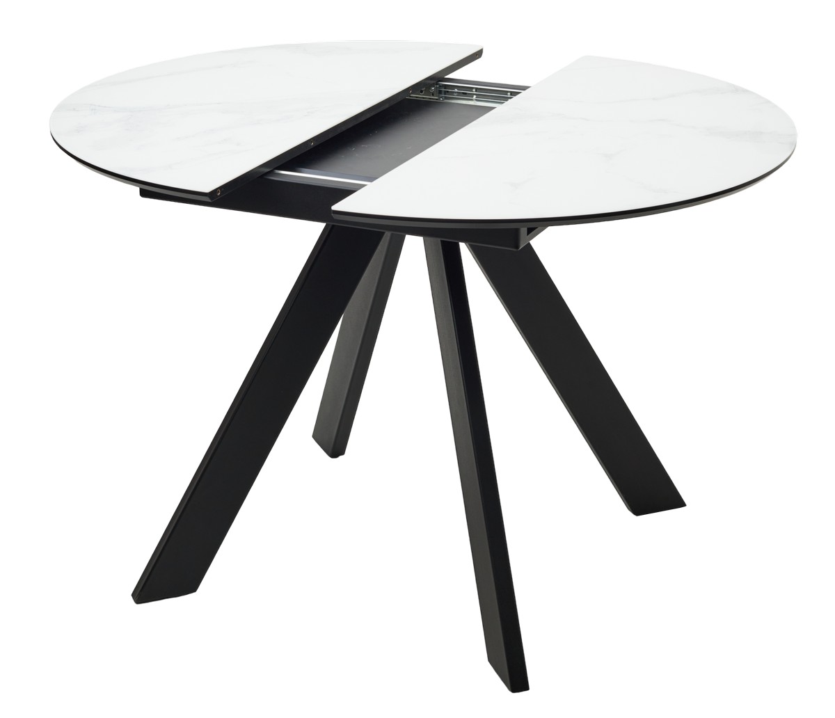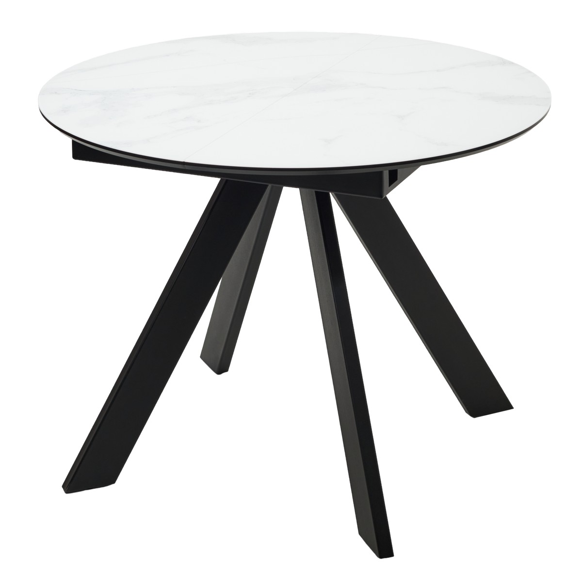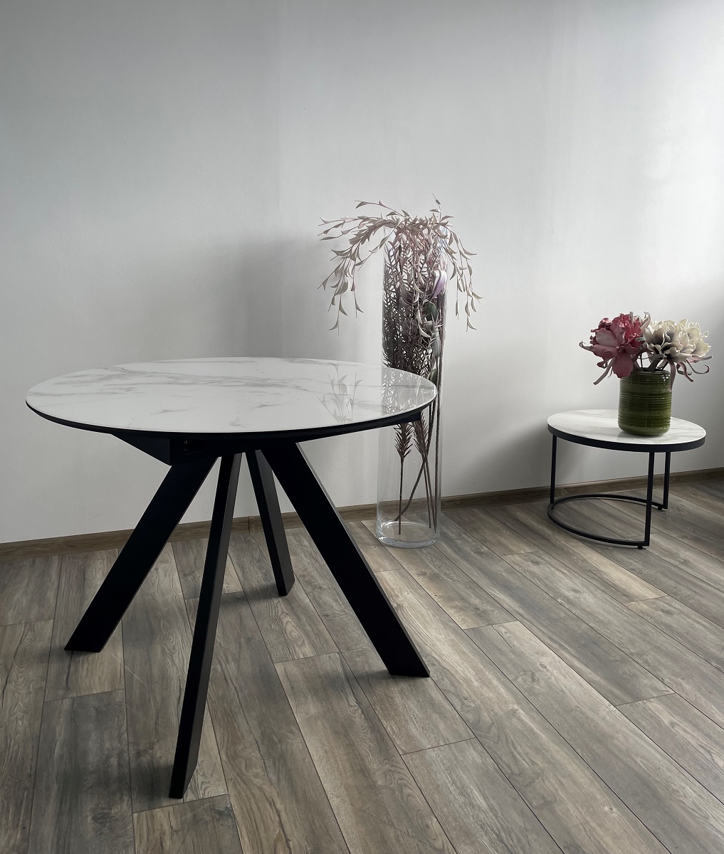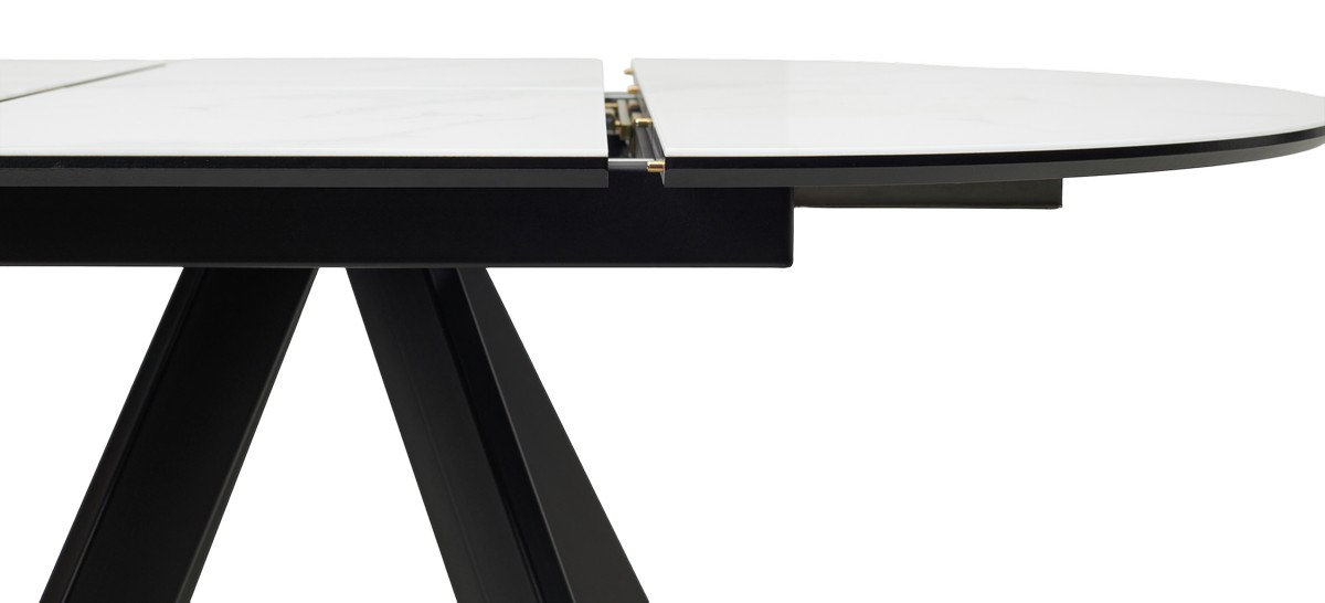 Стол М-City DISAUR Бонжур 100 Белый мрамор, стекло, Черная Шагрень, Черный каркас