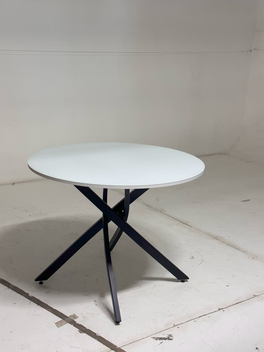 Стол М-City DISAUR Дарио D100 Белый, стекло, Черный каркас