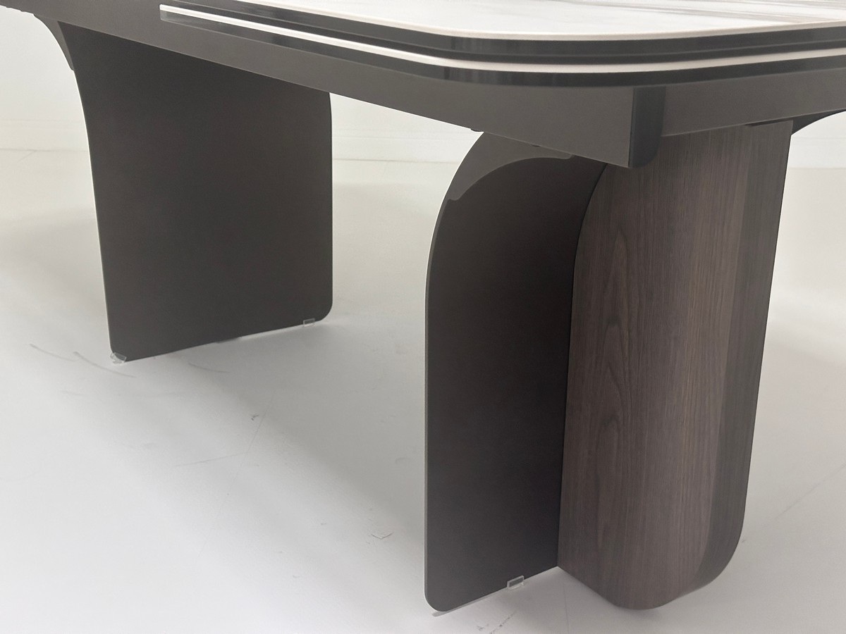 Стол INGERMAN 200 с глянцевой керамической столешницей на металлическом каркасе, комбинированном с деревом