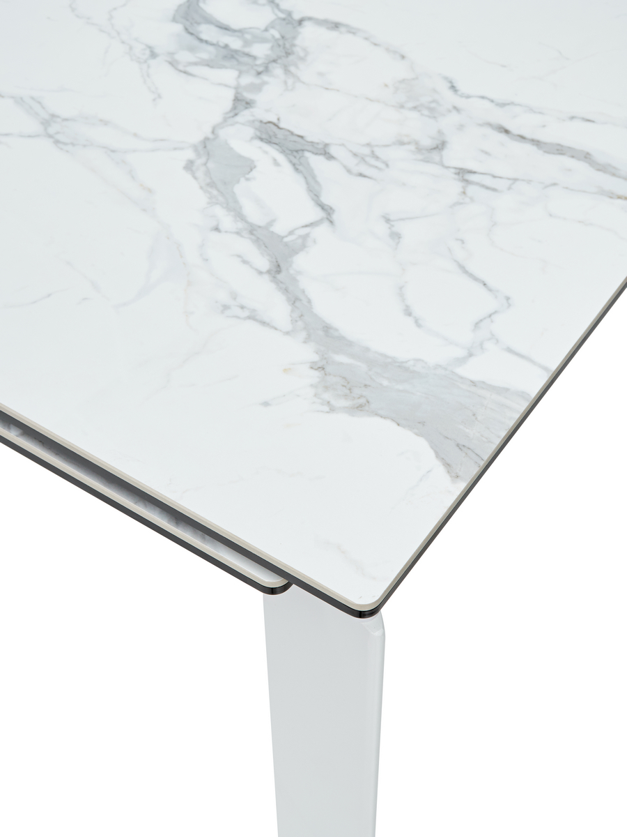 Стол CORNER 120 керамика на стекле в цвете белый мрамор на белом каркасе