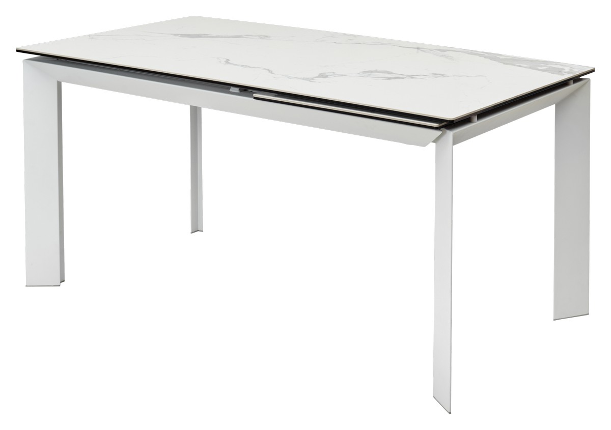 Стол CREMONA с матовой керамической столешницей "под мрамор" на белом каркасе