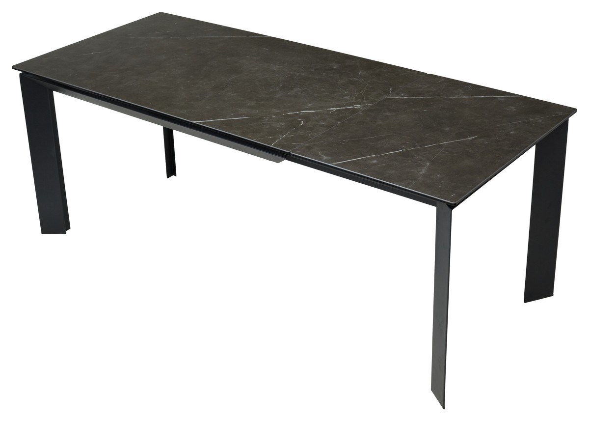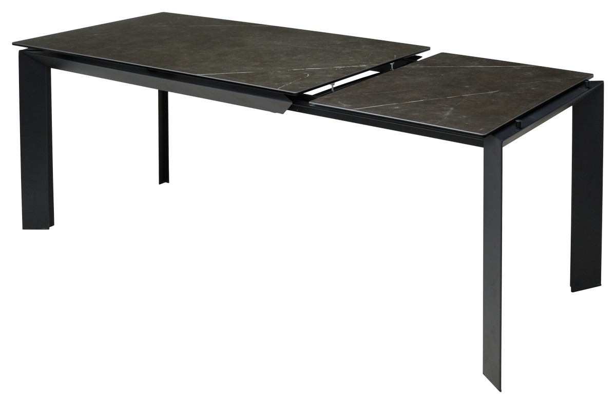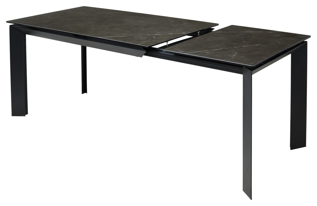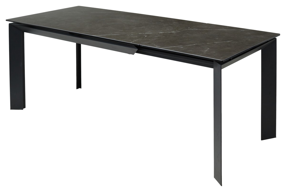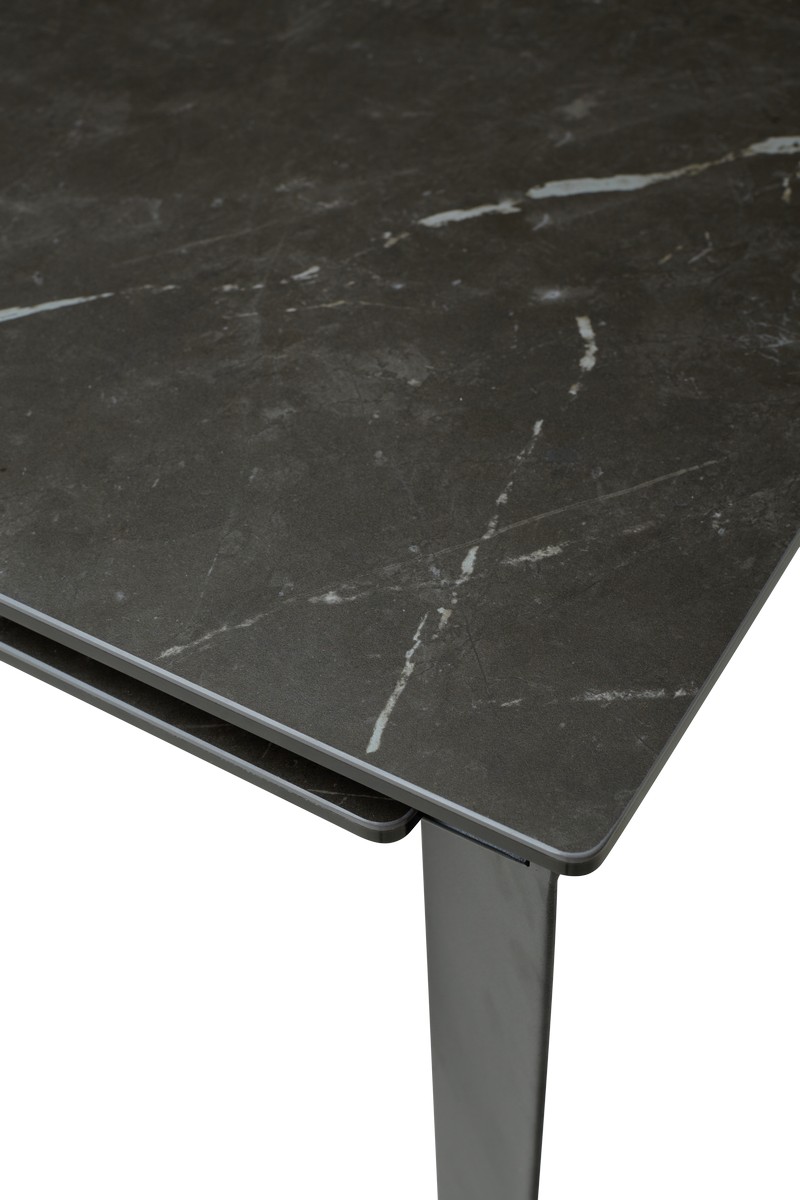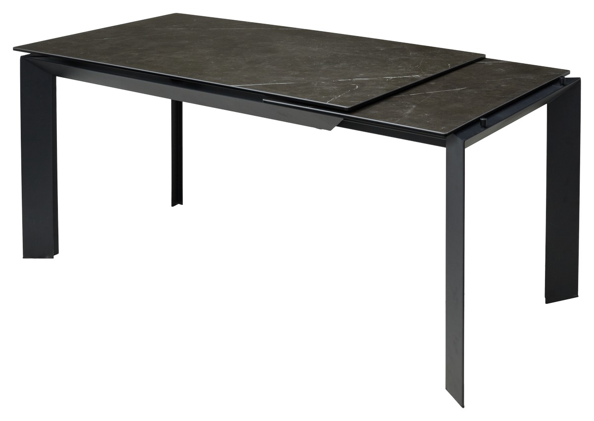 Стол CREMONA с итальянской матовой керамической столешницей цвета "черный мрамор" на черном каркасе