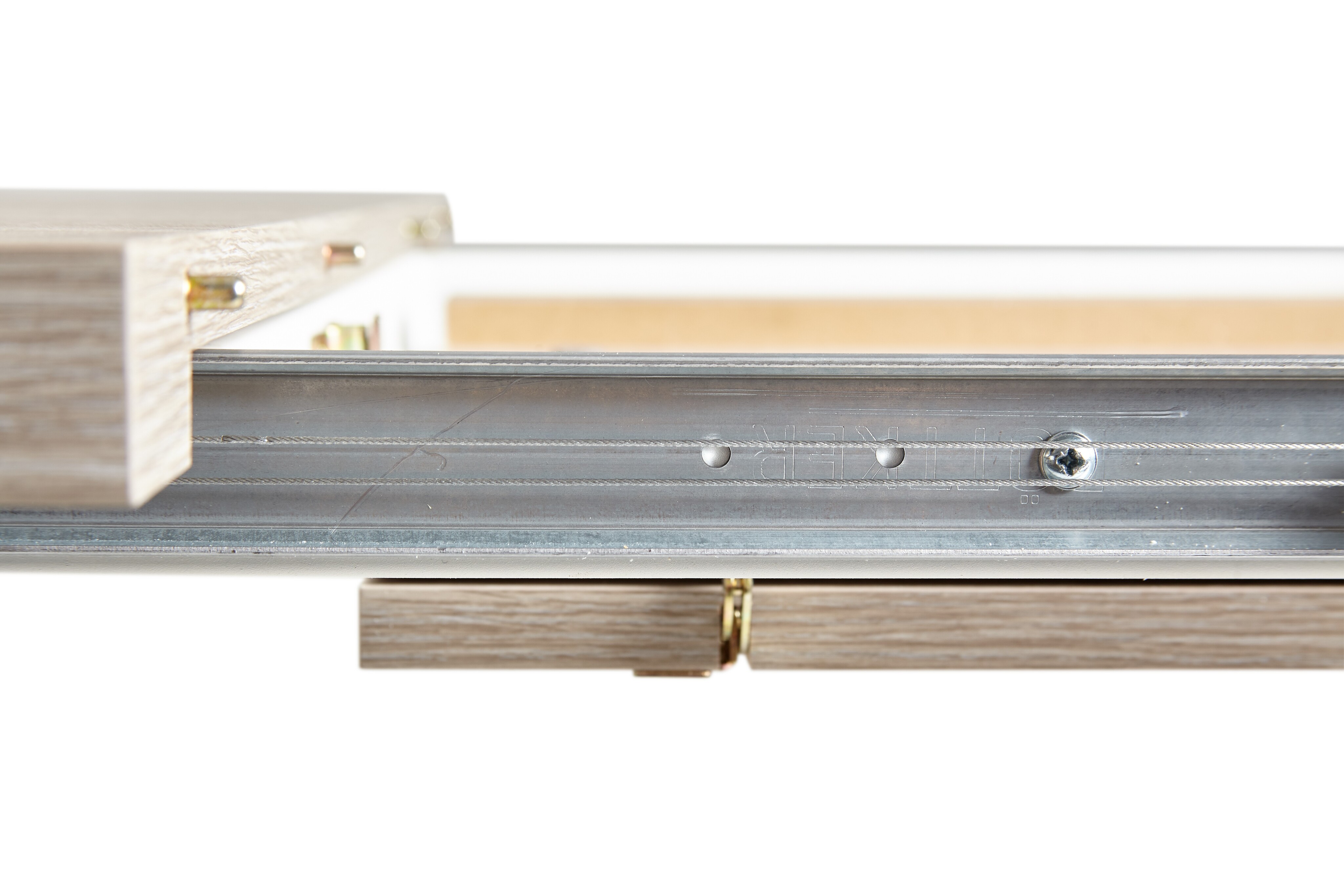 Столешница - ламинированный ДСП. Толщина столешницы 35 мм по бортикам, 18 мм - по центру. Немецкий механизм раскладывания POTTKER. Металлическая рама под столешницей. Ножки стола крепятся к металлической раме,