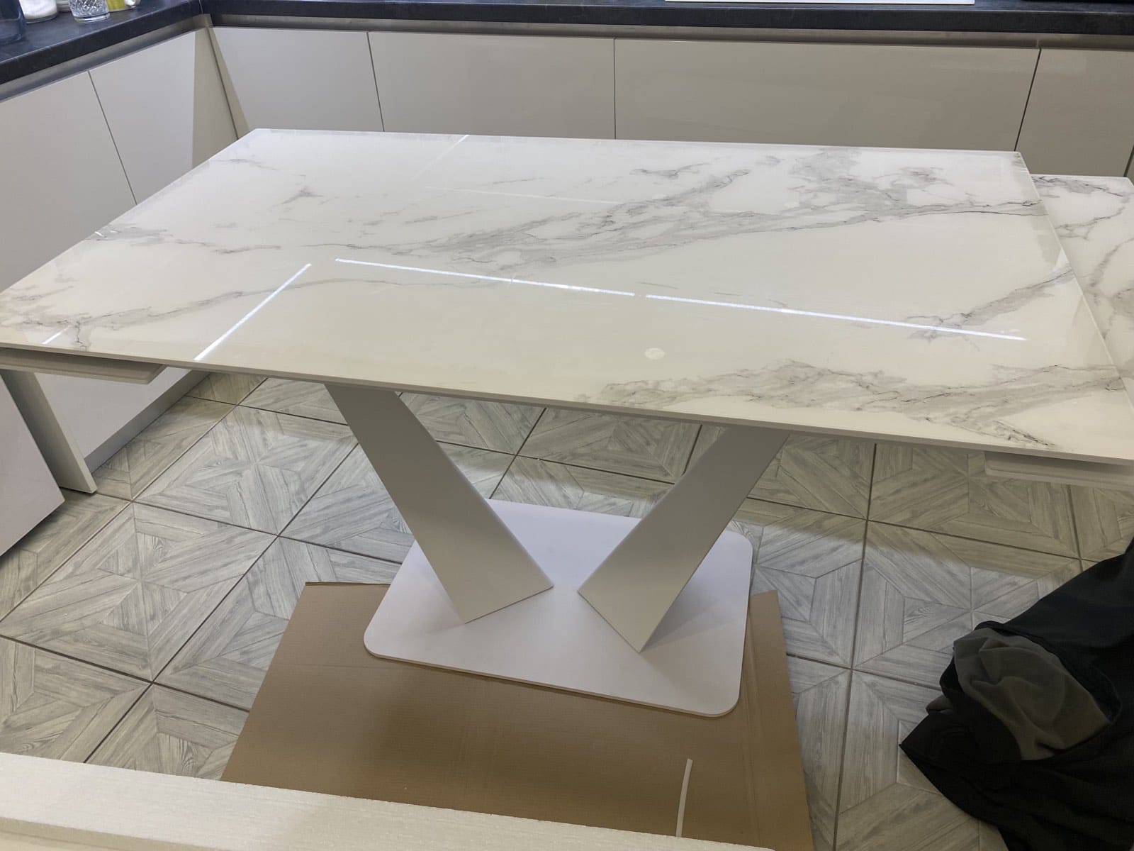 Стол Ниагара белый мрамор со стеклянной столешницей