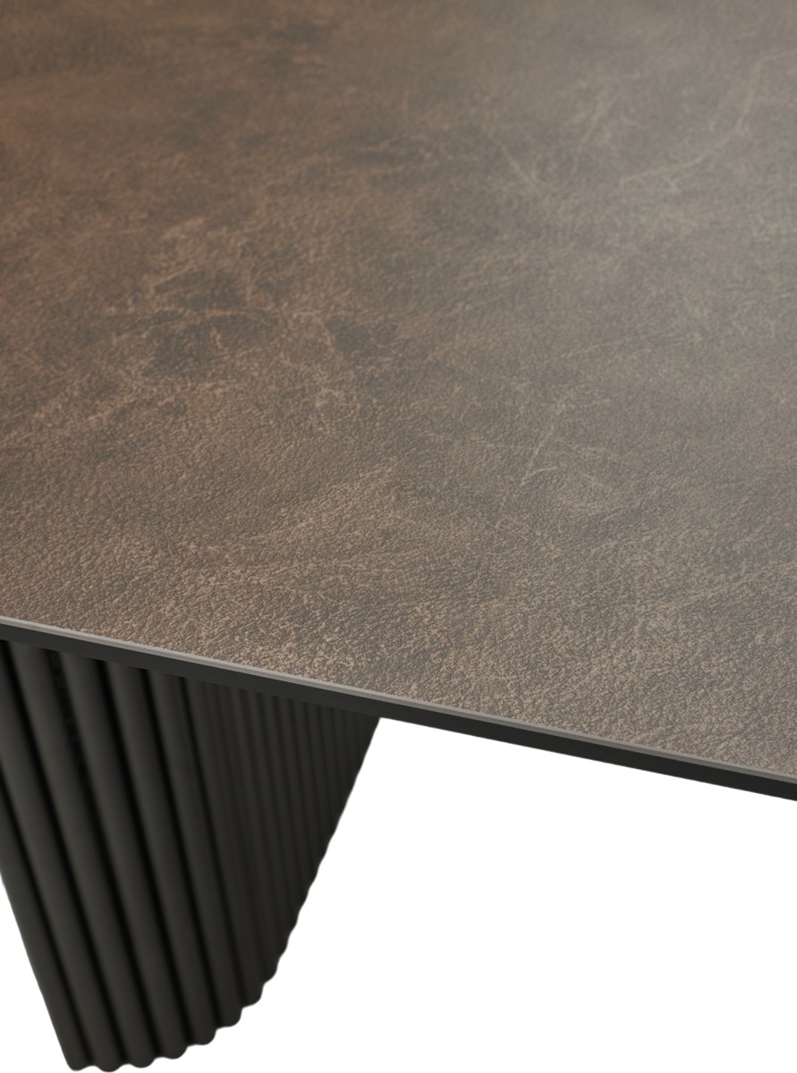 матовая испанская керамика с визуальным эффектом поверхности "под кожу", толщина столешницы 13 мм (3 мм керамика + 10 мм стекло), не царапается, не впитывает загрязнения, термостойкая;