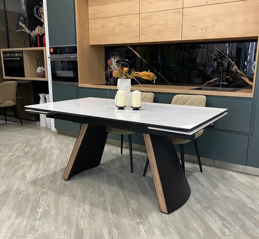 Стол М-City DISAUR Рандеву 160 Белый мрамор матовый 9806035, керамика, Черный, Орех Эко