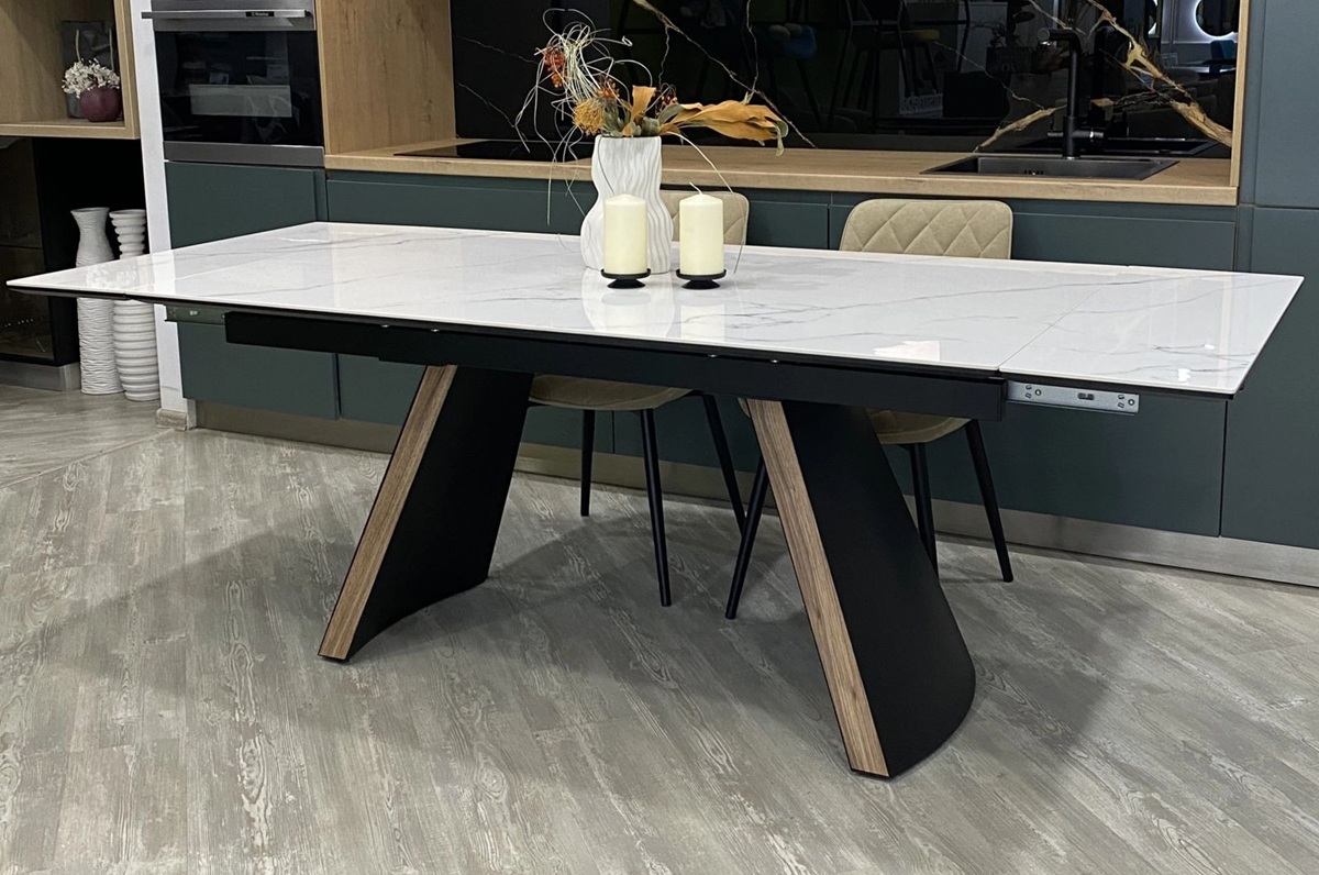 Стол РАНДЕВУ 160 БЕЛЫЙ МРАМОР матовый с керамической столешницей