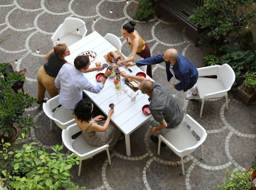 Дизайн: Raffaello Galiotto. Раздвижной столRio Alu 140 Extensibileс архитектурными деталями и выраженной индивидуальностью позволяет создать поистине оригинальную обстановку на открытом воздухе.С помощью этой модели обеденная зона будет гибкой и функциональной. Данная модель украсит террасы частных домов и пространства для проведения банкетов. Привлекающим акцентом является столешница с текстурной отделкой "под дерево", Она придает столу теплый, но в то же время современный характер. Особенности: Каркас выполнен из окрашенного алюминия.Алюминий - очень износостойкий и универсальный материал, легко дезинфицируется и может быть на 100% переработан бесчисленное количество раз с сохранением своих структурных характеристик. Алюминиеваялакированнаястолешница с покрытием, украшеннаяузором "под дерево". Регулируемые накладки на ножках. Модель имеет систему выдвижения, которая позволяет конструкции скользить, всегда удерживая ножки на концах стола. Таким образом можно избежать любых неприятных неудобств из-за мешающих опор. Стол был разработан с идеальной системой быстрой фиксации его удлиняемой части: после расширения RIO представляет собой длинный фиксированный стол без каких-либо недостатков. Продукт протестирован в соответствии с CATAS. Открыть технические характеристики. Открыть инструкцию по эскплуатации. Рекомендации производителя по уходу за мебелью: Для эффективной очистки: Промойте изделие водой, чтобы удалить всю грязь и пыль с поверхности. Распылите на поверхность средство Magic Cleaner Nardiили неагрессивное универсальное моющее средство. Дайте моющему средству подействовать на несколько минут. Затем протрите влажной тканью или губкой. Для удаления стойких загрязнений и следов с поверхности производитель рекомендуетиспользовать средствоMagic Sponge Nardi имеламиновую губку.Промойте поверхность большим количеством воды и высушите насухо. Используйте зубную щетку, чтобы удалить грязь в труднодоступных местах.Характеристики