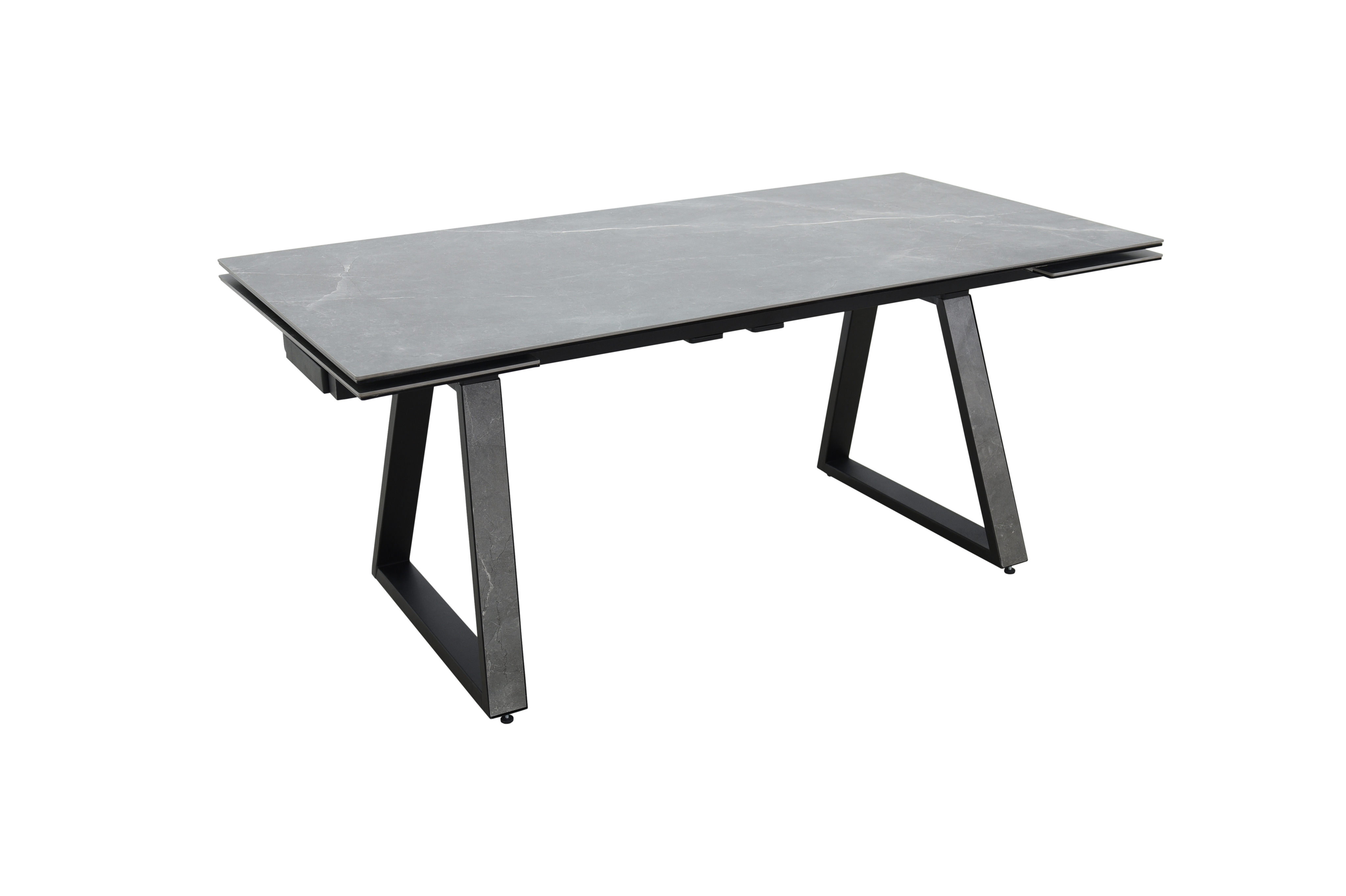 Обеденный стол с двумя торцевыми механизмами подъёма вставкок, опоры металлические окрашеные. Столешница из керамогранита / Опоры КвадроХарактеристики