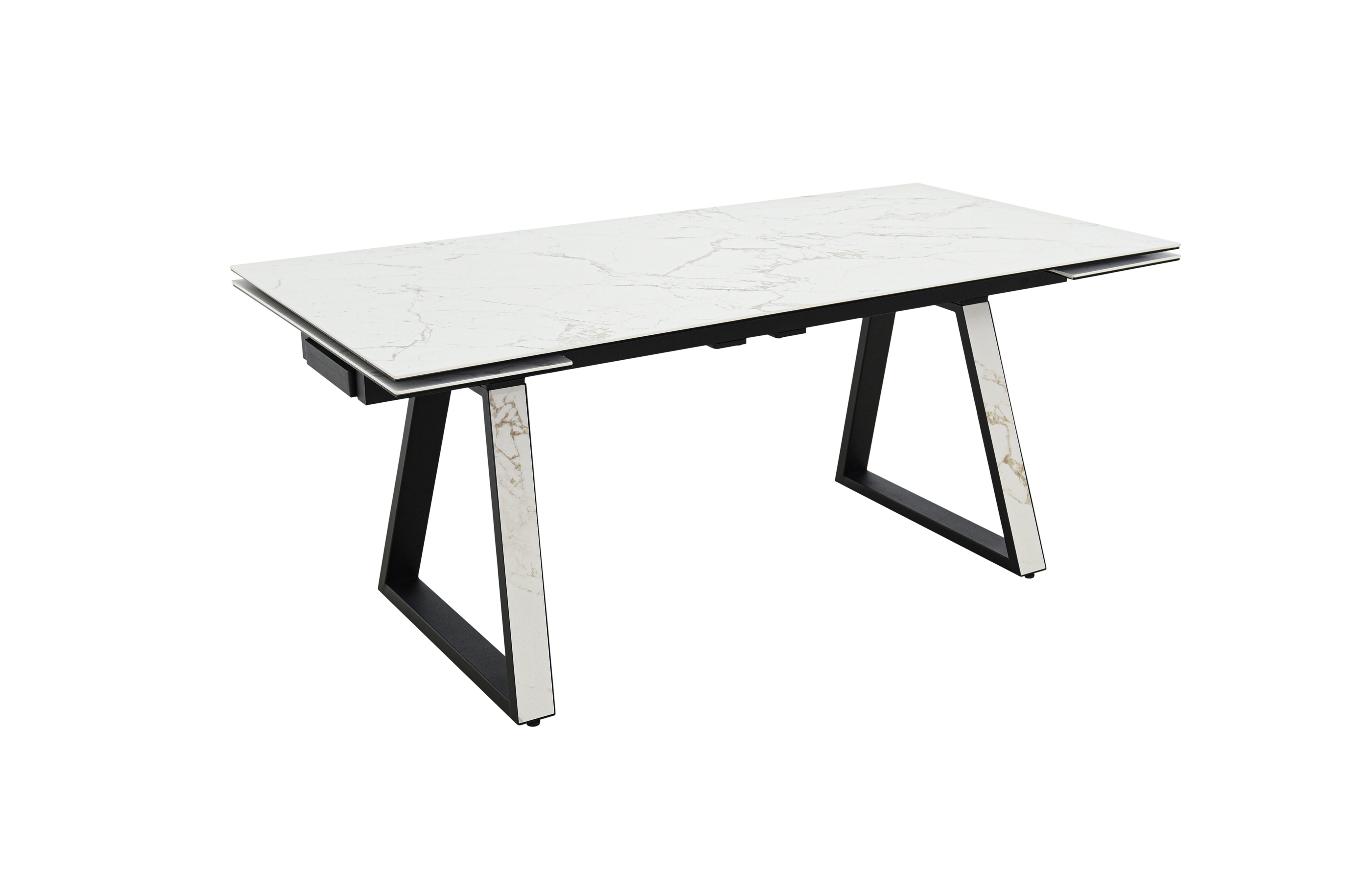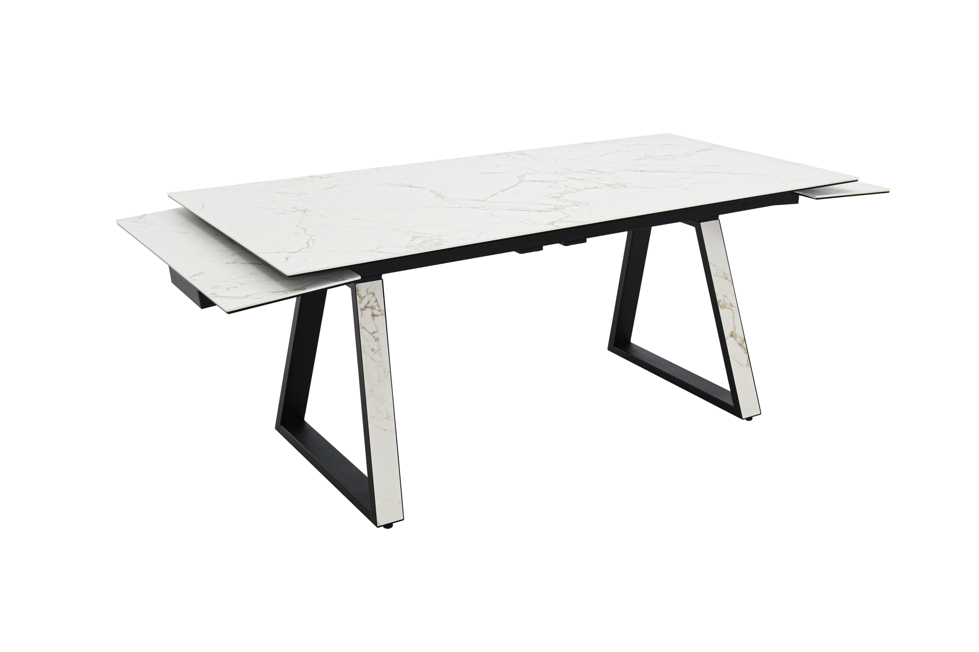 Обеденный стол с двумя торцевыми механизмами подъёма вставкок, опоры металлические окрашеные. Столешница из керамогранита / Опоры КвадроХарактеристики