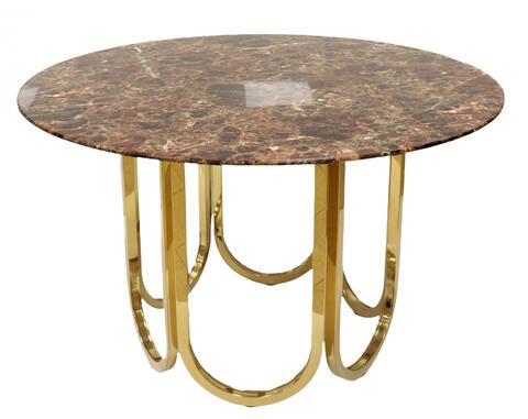 Стол обеденный Лори F-1386-1 — это стильное и функциональное решение для современного дома. Этот обеденный дизайнерский стол сочетает в себе элегантный внешний вид, прочные материалы и удобную форму, делая его идеальным выбором как для семейных обедов, так и для уютных встреч с друзьями. Модель выполнена в круглой форме, что делает её особенно удобной для размещения от 4 до 6 человек. Диаметр 122 см обеспечивает достаточное пространство для посуды и блюд, а также позволяет легко взаимодействовать за столом без углов и ограничений. Особенностью стола является столешница из мраморного стекла (10 мм) цвета перламутровый мрамор — материал, который имитирует благородную текстуру натурального камня, при этом обладая высокой устойчивостью к царапинам, загрязнениям и перепадам температур. Такая поверхность выглядит богато и добавляет интерьеру глубины. Каркас изготовлен из прочной нержавеющей стали цвета глянцевое золото, которая не только обеспечивает долговечность конструкции, но и подчёркивает её роскошный дизайн. Золотые опоры создают контраст с переливающейся столешницей и привлекают внимание своей драгоценной фактурой. Этот круглый обеденный стол для кухни или столовой органично впишется в интерьер в стиле минимализм, гламур или современная классика. Благодаря компактности он подходит даже для небольших помещений. Столешница: мраморное стекло 10 мм, цвет: перламутровый мрамор Основание: нержавеющая сталь, глянцевое золото 122х122х76 см Страна производитель: КитайХарактеристики