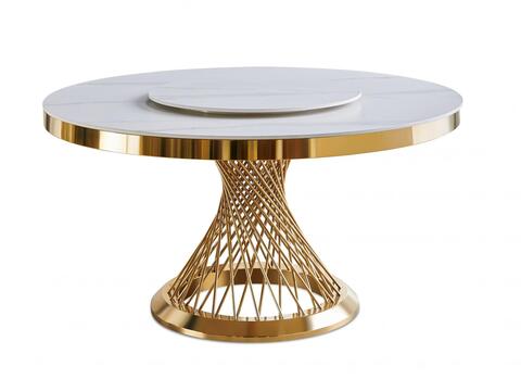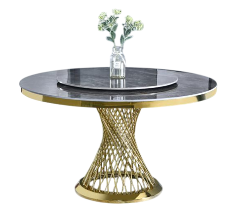 Стол обеденный Мелоди DT-018.1 — это гармоничное сочетание современного дизайна, практичности и эстетики. Этот обеденный дизайнерский стол создан для тех, кто ценит не только внешний вид интерьера, но и комфорт в каждой детали. Модель выполнена в круглой форме, что делает её удобной как для повседневных семейных приемов, так и для торжественных случаев. Диаметр 130 см позволяет разместить за столом до 6 человек, обеспечивая достаточное пространство для блюд, посуды и аксессуаров. Особое внимание привлекает столешница из керамогранита цвета серый мрамор — прочный и долговечный материал, имитирующий благородную текстуру натурального камня. Такая поверхность устойчива к царапинам, загрязнениям и перепадам температур, а также легко очищается. Серый оттенок придаёт изделию строгости и статусности, идеально подходя как для классических, так и для современных интерьеров. В центральной части стола предусмотрен вращающийся съёмный поднос Lazy Susan (80 см), который значительно упрощает доступ к блюдам и делает трапезу более удобной. Поднос можно легко снять для мытья или дополнительного использования вне стола. Каркас изготовлен из высокопрочной нержавеющей стали цвета глянцевое золото, обеспечивающей надёжность конструкции и добавляющей модели роскошного акцента. Золотые опоры создают эффект контраста с глубоким серым цветом столешницы и усиливают общее впечатление от дизайна. Этот круглый обеденный стол органично впишется в интерьер вашей столовой, гостиной или даже в пространство ресторана в стиле лофт, минимализм или гламурная классика. Столешница - керамогранит, цвет: серый мрамор. Вращающийся съемный поднос Lazy Susan (80см) - керамогранит, цвет: серый мрамор Основание: нержавеющая сталь, глянцевое золото 130х130х75 см Страна производитель: КитайХарактеристики