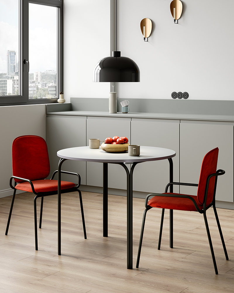 Коллекция Ror – это мебель с индивидуальным характером. Отправной точкой создания линейки стало динамичное движение, воплощенное в логотипе Олимпиады 80, где беговые дорожки образуют силуэт Спасской башни.Стол обеденный имеет прочный стальной каркас с порошковым покрытием, что делает его надежным и долговечным. Столешница из ламинированной МДФ отличается повышенной устойчивостью к царапинам, легко моется и не впитывает грязь. Прекрасные эксплуатационные характеристики позволяют использовать мебель не только в домашних условиях, но и для обустройства коммерческих пространств. Все материалы отвечают высоким стандартам практичности и экологической безопасности. Модель с круглой столешницей дает возможность экономить полезную площадь и при необходимости разместить большее количество стульев.
