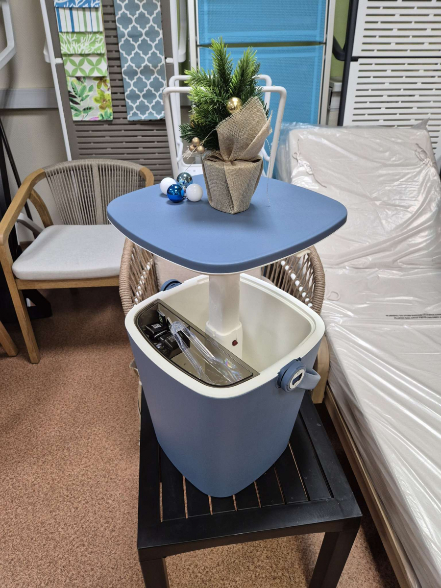 Функциональный столик Pop Up Cool Bar - это изделие, которое одновременно может выступать в роли переносного стола-холодильника с ведром для льда, бара-холодильника для напитков на открытом воздухе, охладителя для пива и вина с подъемной крышкой и ручкой, складного столика для патио. Модель идеально подходит для вечеринок, пикников и пляжа.