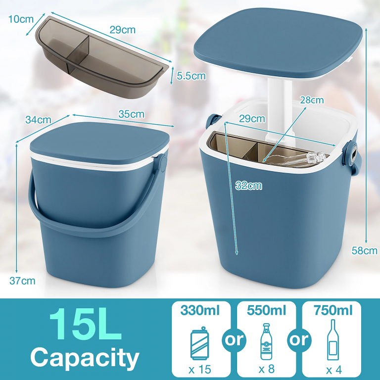 Функциональный столик Pop Up Cool Bar - это изделие, которое одновременно может выступать в роли переносного стола-холодильника с ведром для льда, бара-холодильника для напитков на открытом воздухе, охладителя для пива и вина с подъемной крышкой и ручкой, складного столика для патио. Модель идеально подходит для вечеринок, пикников и пляжа. Особенности: Универсальный дизайн: переносное ведерко для льда представляет собой идеальное сочетание функциональности и стиля. Оно оснащено подъемной крышкой, которая трансформируется в удобный коктейльный столик, идеально подходящий для развлечения гостей на любом мероприятии. Прочность при любых погодных условиях: изделие способно выдерживать различные погодные условия, что делает его надежным выбором для вечеринок на заднем дворе, пикников и других мероприятий на открытом воздухе. Удобные функции: ведерко для льда объемом 15 л оснащено зажимами для еды, которые позволяют надежно зафиксировать предметы, и встроенной открывалкой для бутылок. Модель обеспечивает непревзойденное удобство при охлаждении любых напитков. Легко переносить: благодаря прочной ручке для переноски ведерко можно легко переносить из одного места в другое, что позволит вам устроить вечеринку, куда бы вы ни отправились. Дополнительное место для хранения: столик также включает дополнительное место для хранения столовых приборов, салфеток и других предметов первой необходимости, что делает его универсальным и практичным дополнением к вашей развлекательной обстановке на открытом воздухе. Открыть инструкцию по уходу. Для уточнения всех возможных вариантов материала и цвета данного изделия обращайтесь к нашим менеджерам.Характеристики