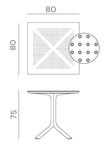 Дизайн:Raffaello Galiotto. Специально разработанный для того, чтобы занимать очень мало места,Clipпредставляет собой профессиональный квадратный стол из стеклопластика, состоящий изцентральнойколонны с 4-мя ножками и столешницыDurelTop, на которой выгравирован круглый перфорированный рисунок. Особенности: Каркас выполнен из стеклопластика(полипропилен, армированный стекловолокном). DurelTop–это новая инновационная система в производстве столешниц, разработанная для достижения высочайшего уровня практичности, устойчивости и элегантности. Столешницы обладают антивандальными свойствами, выполнены из прочного многослойного пластика, на поверхности не остаются следы от сигаретных окурков.Качественные столешницы DurelTop не боятся воды и палящих солнечных лучей, не выгорают и не меняют цвет под их воздействием. Матовая отделка. Накладки на ножкахс регулируемой высотой. Пригодный для вторичной переработки материал. Стол прекрасно подходит для террасы, для сада, а также гостиной или кухни. Данная модель, как и вся мебель Nardi, предназначена как для частных пространств, так и для сферы Contract. Открыть технические характеристики. Открыть инструкцию по сборке. Для уточнения всех возможных вариантов материала и цвета данного изделия обращайтесь к нашим менеджерам.Характеристики