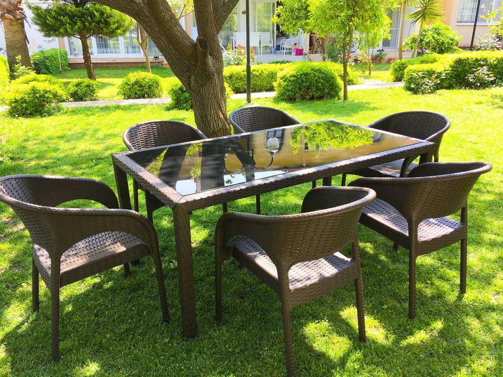 Пластиковый плетеный стол Tahiti выполнен из прочного погодостойкого пластика. Пластиковые столы серии Tahiti с имитацией плетения натурального ротанга станут отличным выбором для обстановки фуд-кортов, кафе, ресторанов и баров. Благодаря использованию высококачественных материалов, они долгое время не теряют своего привлекательного внешнего вида, даже несмотря на активную эксплуатацию. Столешница из закаленного стекла не деформируется от влаги или температуры, не царапается, не впитывает запахов. Благодаря отсутствию металлического каркаса и устойчивости к ультрафиолетовому воздействию, плетеные столы из пластика Tahiti можно использовать в том числе и на открытых площадках. Особенности: изготовлен из прочного погодостойкого пластика с имитацией плетения натурального ротанга; столешница выполнена из темного закаленного стекла; не имеет металлического каркаса - не ржавеет, не поддается коррозии; устойчив к ультрафиолету и атмосферным осадкам, выдерживает минусовую температуру до 20 градусов; может быть разобран; подходит для использования на открытом воздухе и в помещении; сертификат CATAS. Открыть технические характеристики. Открыть инструкцию по сборке.Характеристики