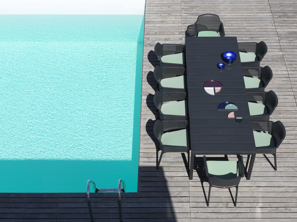 Дизайн: Raffaello Galiotto. Пластиковый раздвижной стол Rio 210 Extensibileс архитектурными деталями и яркой индивидуальностью разработан для создания гибких и современных пространств. Решетчатая столешница DurelTop с УФ-обработкой и окрашенная алюминиевая рама обеспечивают долговечность и надежность модели. Благодаря вставкам длина стола может изменяться от 2100 до 2800 мм.Надежнаяи функциональнаямодель станет идеальнымрешениемдля столовой на открытом воздухе, сада, террасыили площадки возле бассейна. Особенности: Ножки стола выполнены из окрашенного алюминия. Столешницы DurelTopобладают антивандальными свойствами, выполнены из прочного многослойного пластика, на поверхности не остаются следы от сигаретных окурков.Это равномерноокрашенный нетоксичными пигментами полипропиленвысокого качества с добавлением анти-УФ-агентов, который устойчив к воде и воздействию солнца, невыгорает и не меняет цвет под их воздействием. Материал легкий, долговечный, нетоксичный,антистатический и атмосферостойкий - настоящее итальянское качество! Регулируемые накладки на ножках. Желательно использование столав затененных местах. Продукт протестирован в соответствии со стандартом. Открыть технические характеристики. Открыть инструкцию по эксплуатации. Рекомендации производителя по уходу за мебелью: Полипропилен на 100% пригоден для вторичной переработки и легко дезинфицируется. Для эффективной очистки: Промойте изделие водой, чтобы удалить всю грязь и пыль с поверхности. Распылите на поверхность средство Magic Cleaner Nardiили неагрессивное универсальное моющее средство. Дайте моющему средству подействовать на несколько минут. Затем протрите влажной тканью или губкой. Для удаления стойких загрязнений и следов с поверхности производитель рекомендуетиспользовать средствоMagic Sponge Nardi имеламиновую губку.Промойте поверхность большим количеством воды и высушите насухо. Используйте зубную щетку, чтобы удалить грязь в труднодоступных местах.Характеристики
