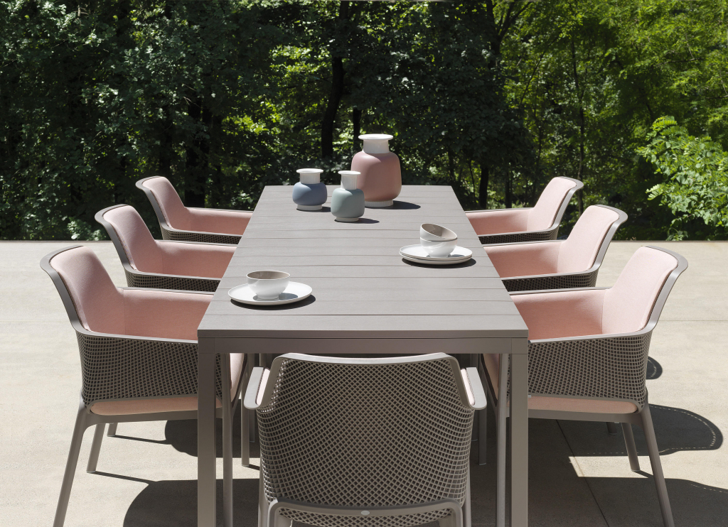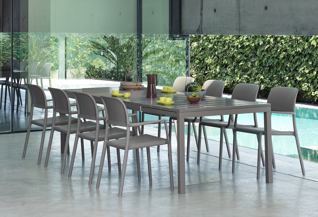 Дизайн: Raffaello Galiotto. Пластиковый раздвижной столRio 210 Extensibileс архитектурными деталями и яркой индивидуальностью разработан для создания гибких и современных пространств. Решетчатая столешница DurelTop с УФ-обработкой и окрашенная алюминиевая рама обеспечивают долговечность и надежность модели. Благодаря вставкам длина стола может изменяться от 2100 до 2800 мм.Надежнаяи функциональнаямодель станет идеальнымрешениемдля столовой на открытом воздухе, сада, террасыили площадки возле бассейна. Особенности: Ножки стола выполнены из окрашенного алюминия. Столешницы DurelTopобладают антивандальными свойствами, выполнены из прочного многослойного пластика, на поверхности не остаются следы от сигаретных окурков.Это равномерноокрашенный нетоксичными пигментами полипропиленвысокого качества с добавлением анти-УФ-агентов, который устойчив к воде и воздействию солнца, невыгорает и не меняет цвет под их воздействием. Материал легкий, долговечный, нетоксичный,антистатический и атмосферостойкий - настоящее итальянское качество! Регулируемые накладки на ножках. Желательно использование столав затененных местах. Продукт протестирован в соответствии со стандартом. Открыть технические характеристики. Открыть инструкцию по эксплуатации. Рекомендации производителя по уходу за мебелью: Полипропилен на 100% пригоден для вторичной переработки и легко дезинфицируется. Для эффективной очистки: Промойте изделие водой, чтобы удалить всю грязь и пыль с поверхности. Распылите на поверхность средство Magic Cleaner Nardiили неагрессивное универсальное моющее средство. Дайте моющему средству подействовать на несколько минут. Затем протрите влажной тканью или губкой. Для удаления стойких загрязнений и следов с поверхности производитель рекомендуетиспользовать средствоMagic Sponge Nardi имеламиновую губку.Промойте поверхность большим количеством воды и высушите насухо. Используйте зубную щетку, чтобы удалить грязь в труднодоступных местах.Характеристики