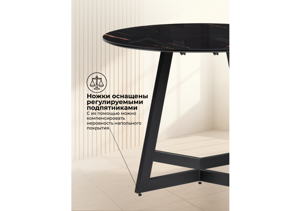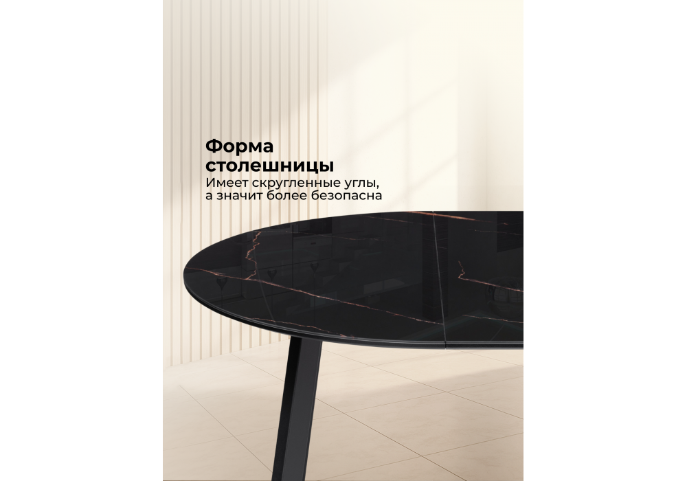 Стол стеклянный Woodville Алингсос 100(140)х100х76 обсидиан, черный