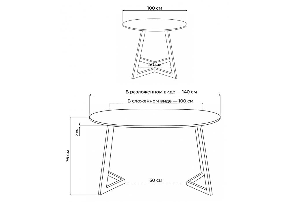 Длина стола в разложенном виде