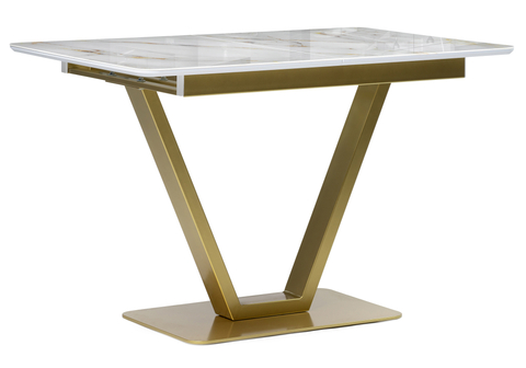 Вы можете купить Стол стеклянный Woodville Бугун белый, золото оптом в нашем магазине, предложим цену с оптовой скидкой.