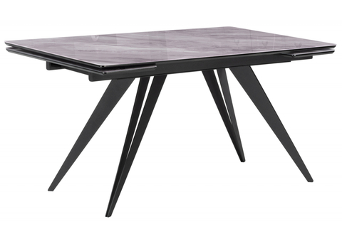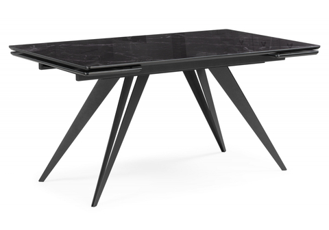 Стол стеклянный Woodville Дарвин 140(200)х80 белый мрамор, черный, ножки черные
