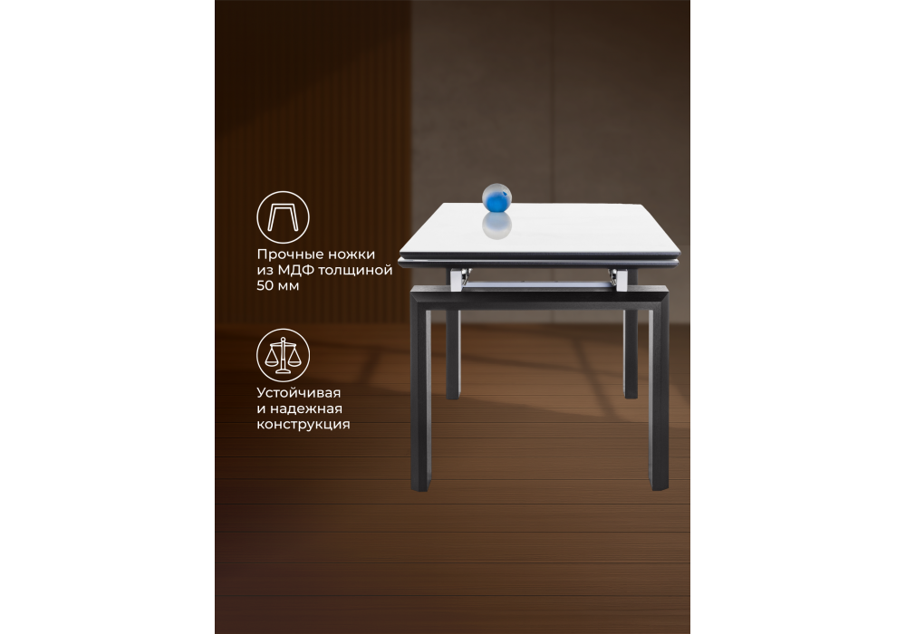 Стеклянный стол Давос - это современный и стильный предмет мебели, который может стать отличным дополнением интерьера любой комнаты. Каркас и ножки стола изготовлены из ЛДСП, что обеспечивает прочность и стабильность конструкции. Столешница состоит из МДФ и стекла, что придает ему элегантный и изысканный вид. Прямоугольная форма стола позволяет комфортно разместить на нем большое количество предметов, а возможность раскладывания стола до 2000 мм делает его идеальным для проведения больших семейных ужинов или приемов. Механизм трансформации слайдер обеспечивает легкость и удобство раскладывания стола. Ножки стола Давос имеют интересный дизайн, который придает ему индивидуальность и оригинальность. Этот стол может стать прекрасным дополнением современного интерьера, а также использоваться в офисных помещениях. В целом, стеклянный стол Давос - это функциональный и эстетичный предмет мебели, который подойдет для использования в различных помещениях, включая кухню, столовую, гостиную или офис. Толщина столешницы: 26 мм. Габариты упаковки: 1510х910х180 820х730х160Инструкции